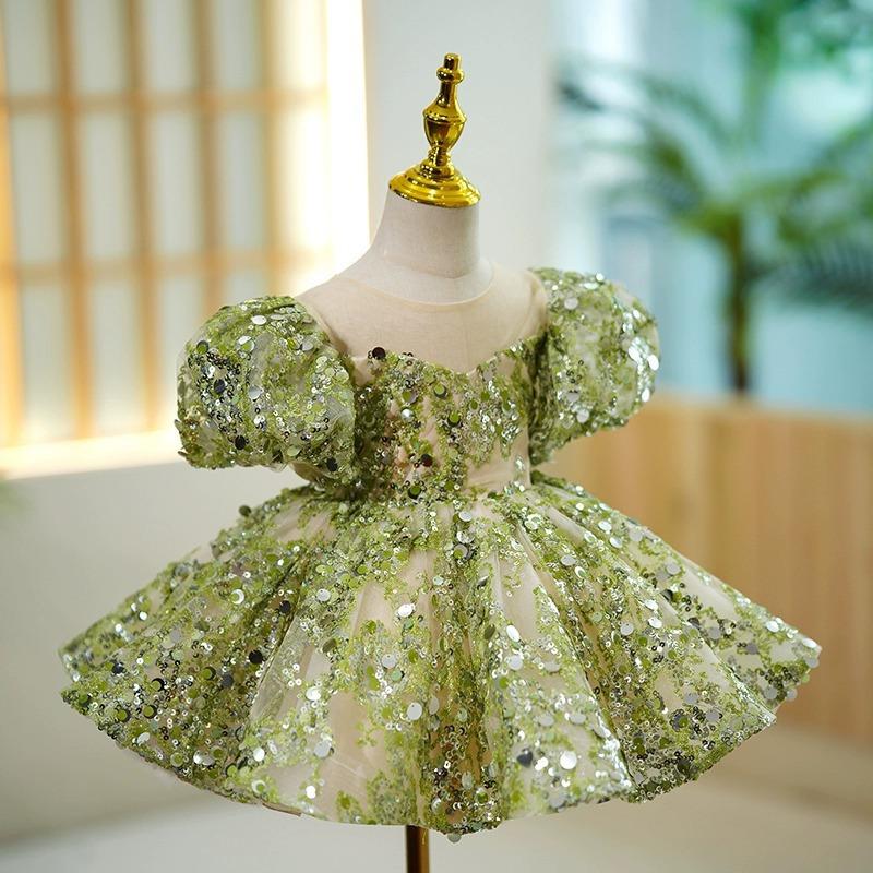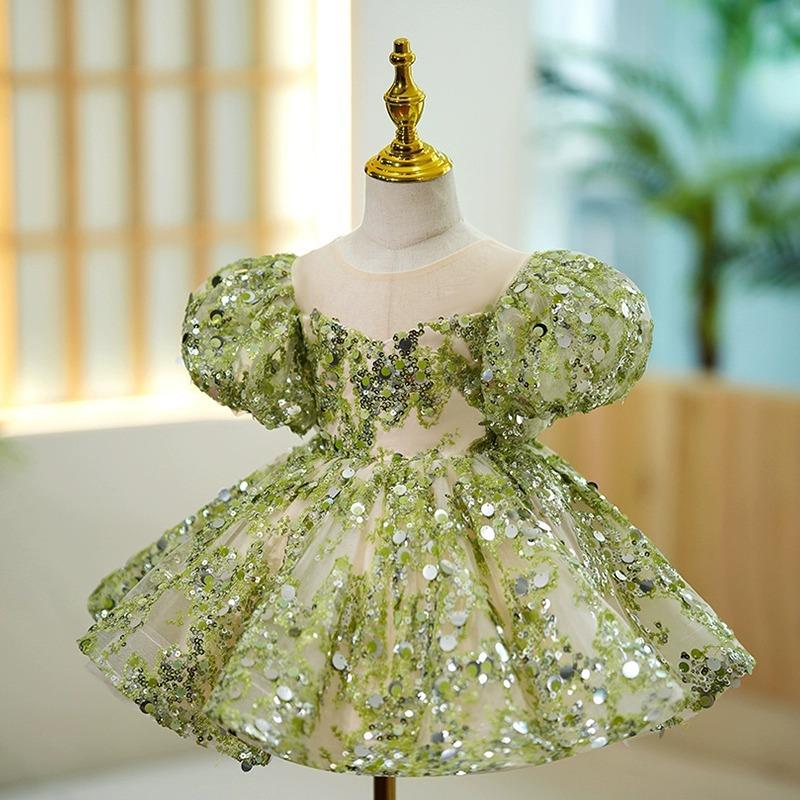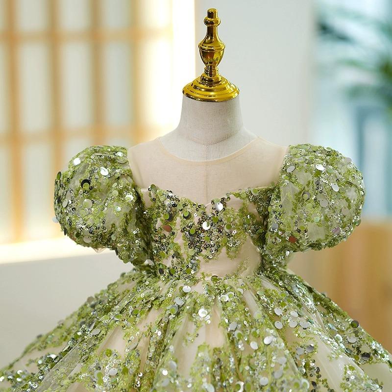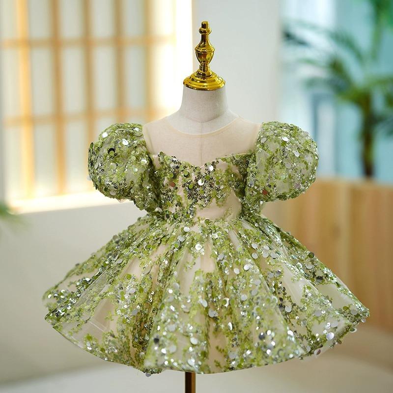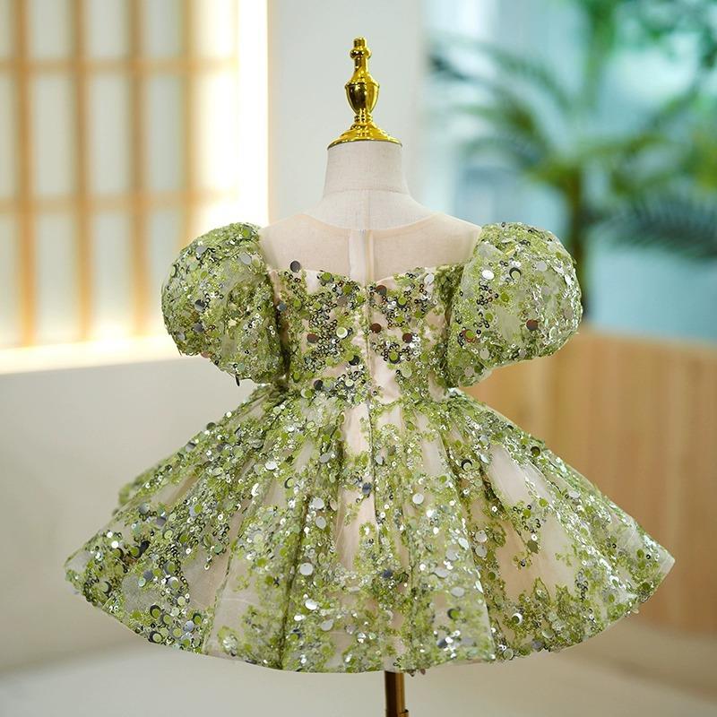 Vestido de princesa de alta gama para niñas, vestido de lentejuelas para presentaciones de piano, vestido pontón para cumpleaños infantiles.