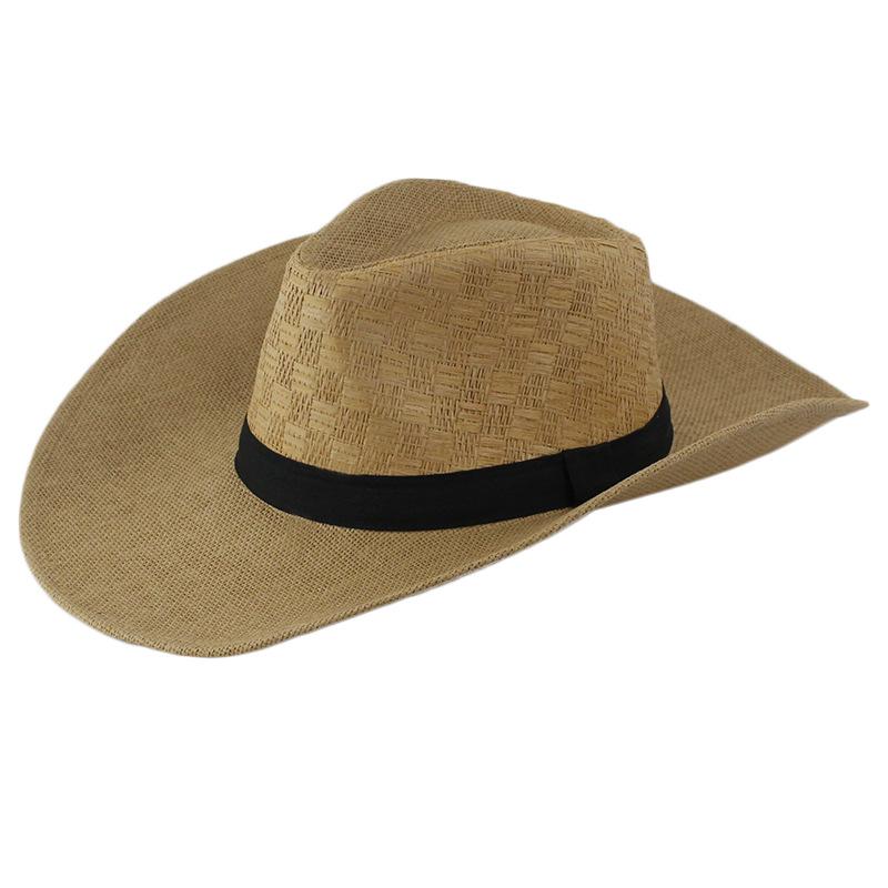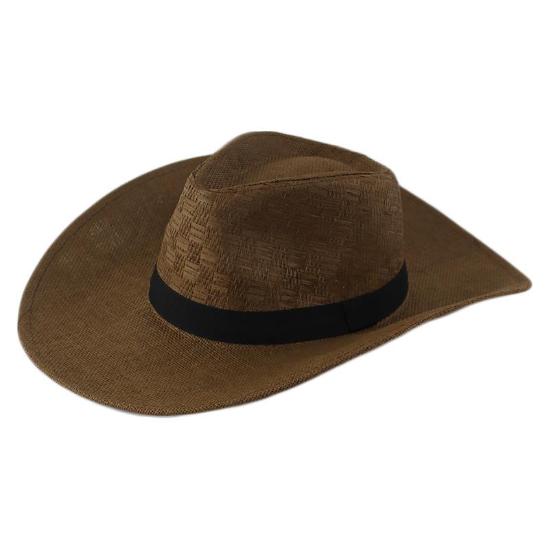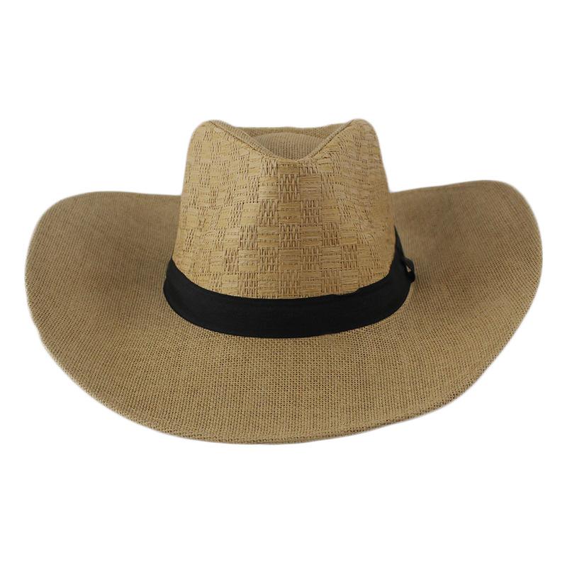 Sombrero de paja de gran tamaño de verano a la moda para hombre, sombrero parasol tejido, sombrero de vaquero occidental, sombrero para el sol, sombrero de playa