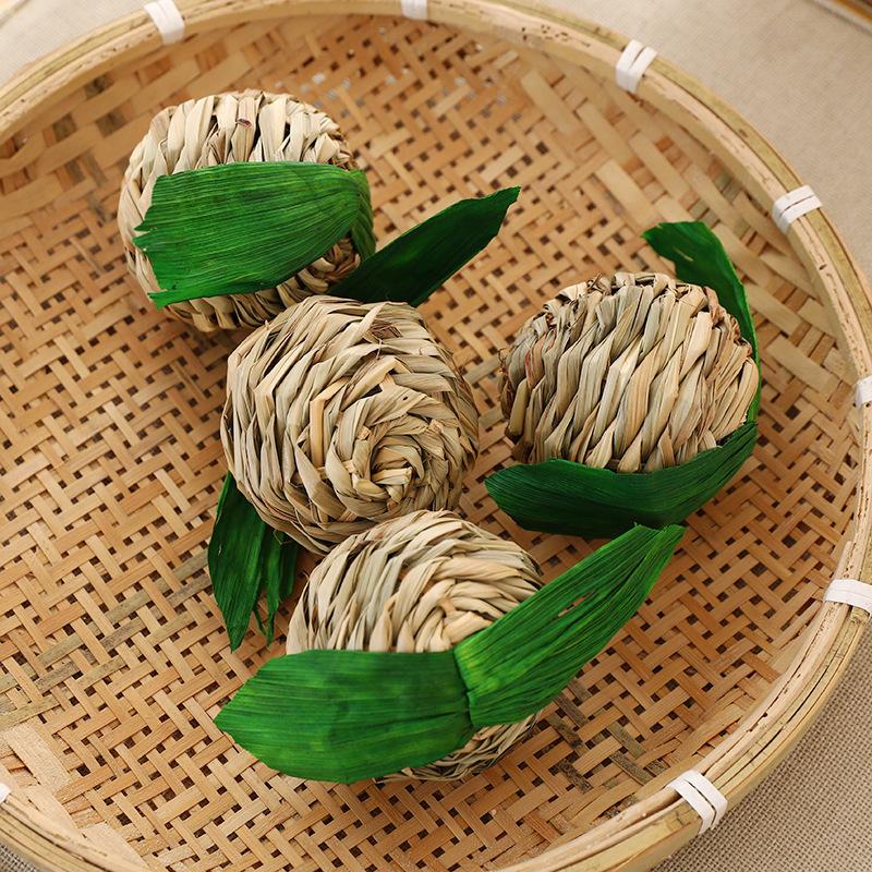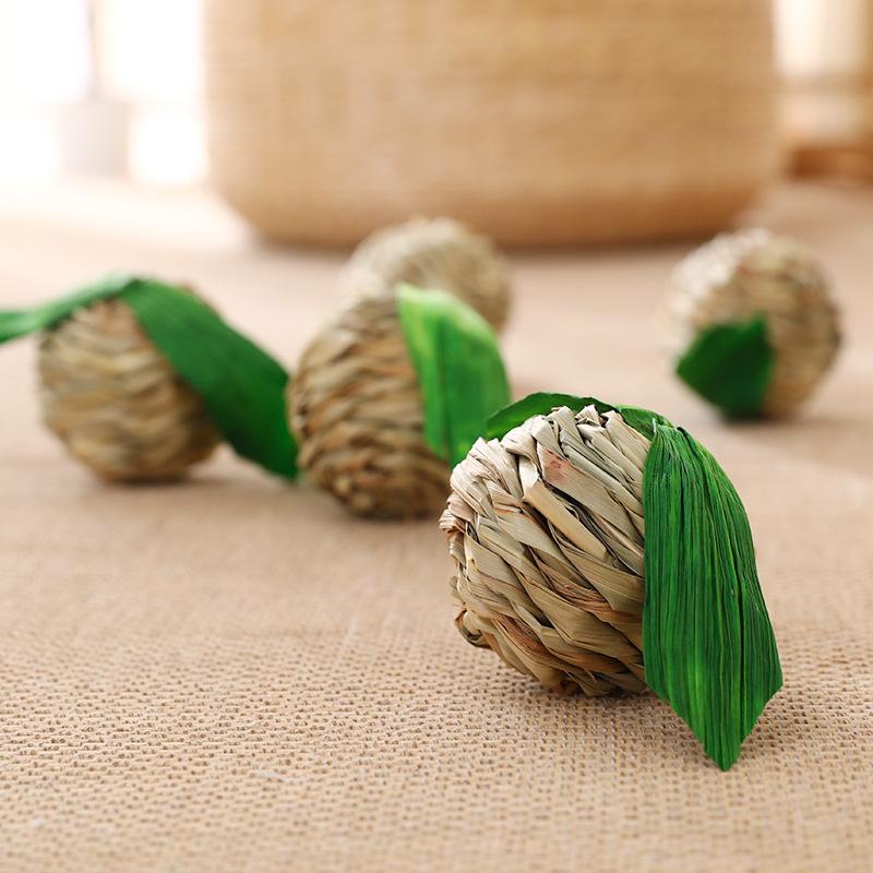 Suministro directo de fábrica bola de paja para mascotas hámster conejo gato bola para mascotas juguete para morder paja simulación manzana