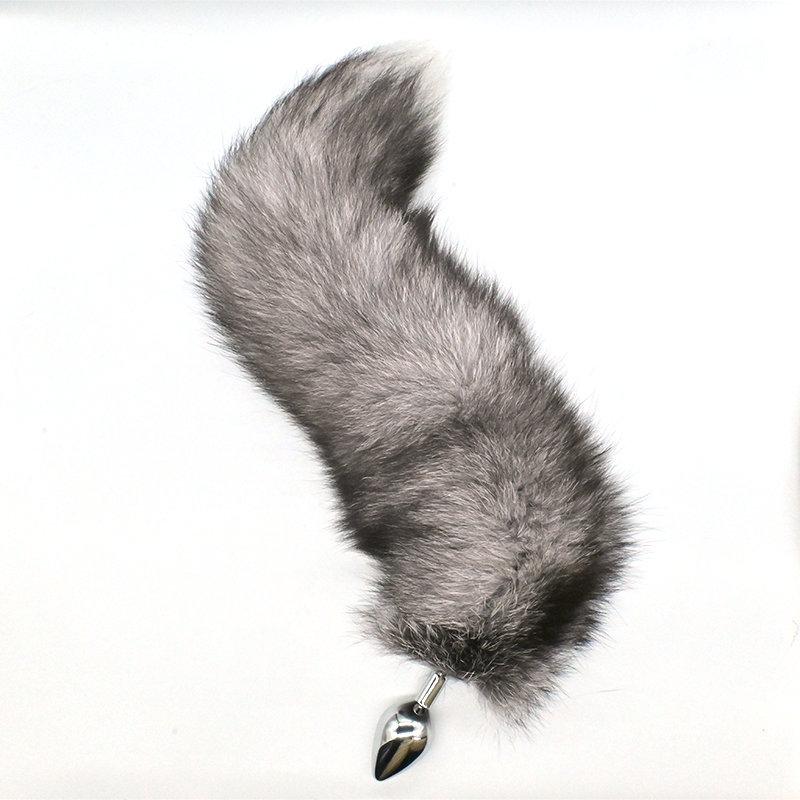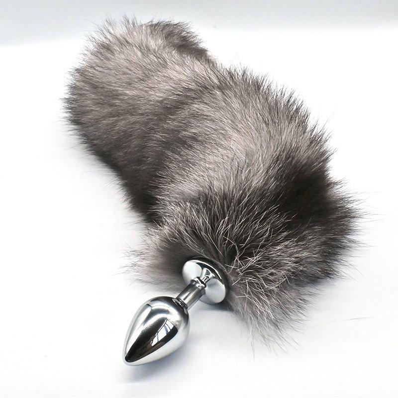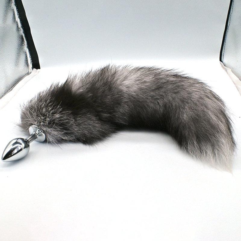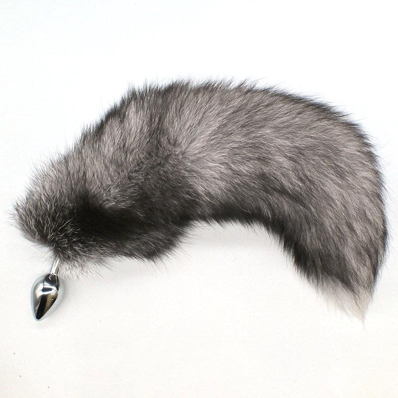 Tamaño mediano del tapón anal de metal: Color del tapón anal: plateado, diámetro 3,5 cm, largo 8,5 cm, largo de la cola aproximadamente 40 cm, peso neto 130 g