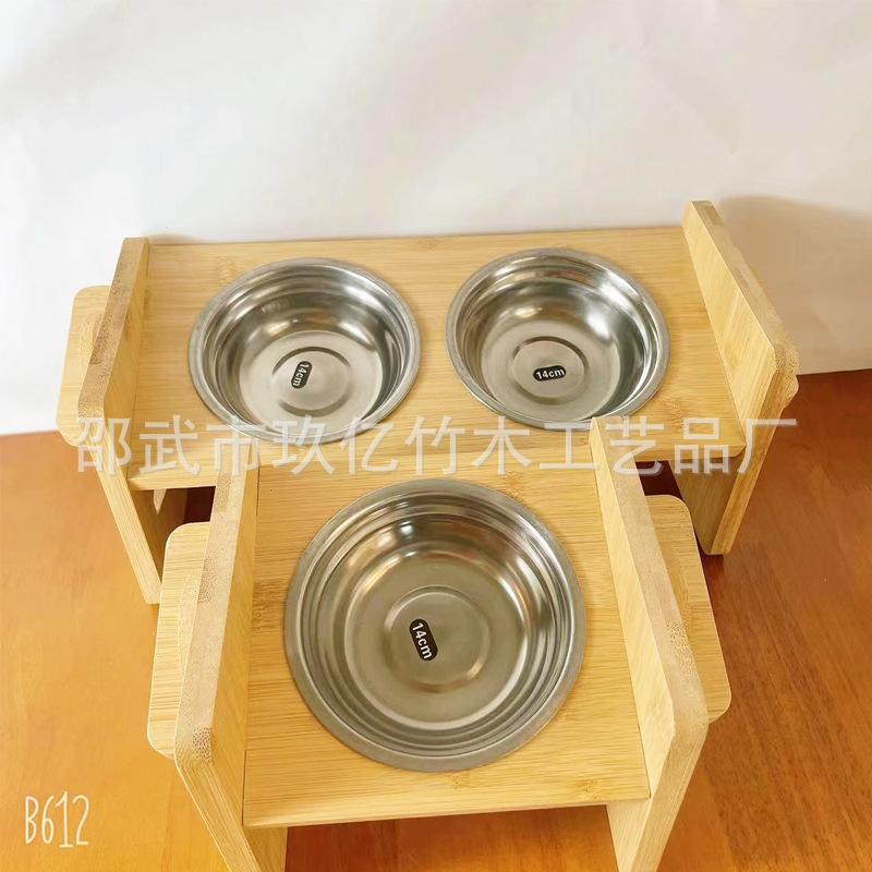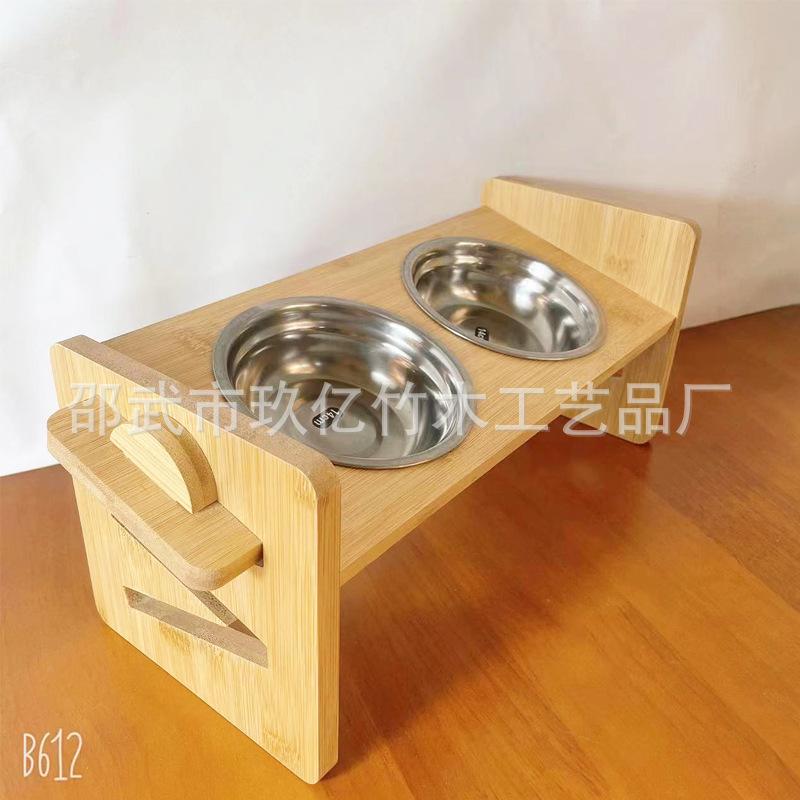 Venta al por mayor de fábrica bambú mascota gato perro comedero soporte ajustable comedero simple y doble soporte para comedero comercio electrónico transfronterizo