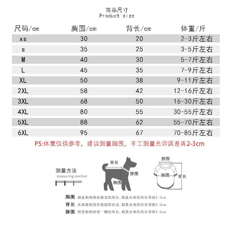 Xs (bust 30, back length 20), S (bust 35, back length 25), M (bust 40, back length 30), L (bust 45, back lengt...