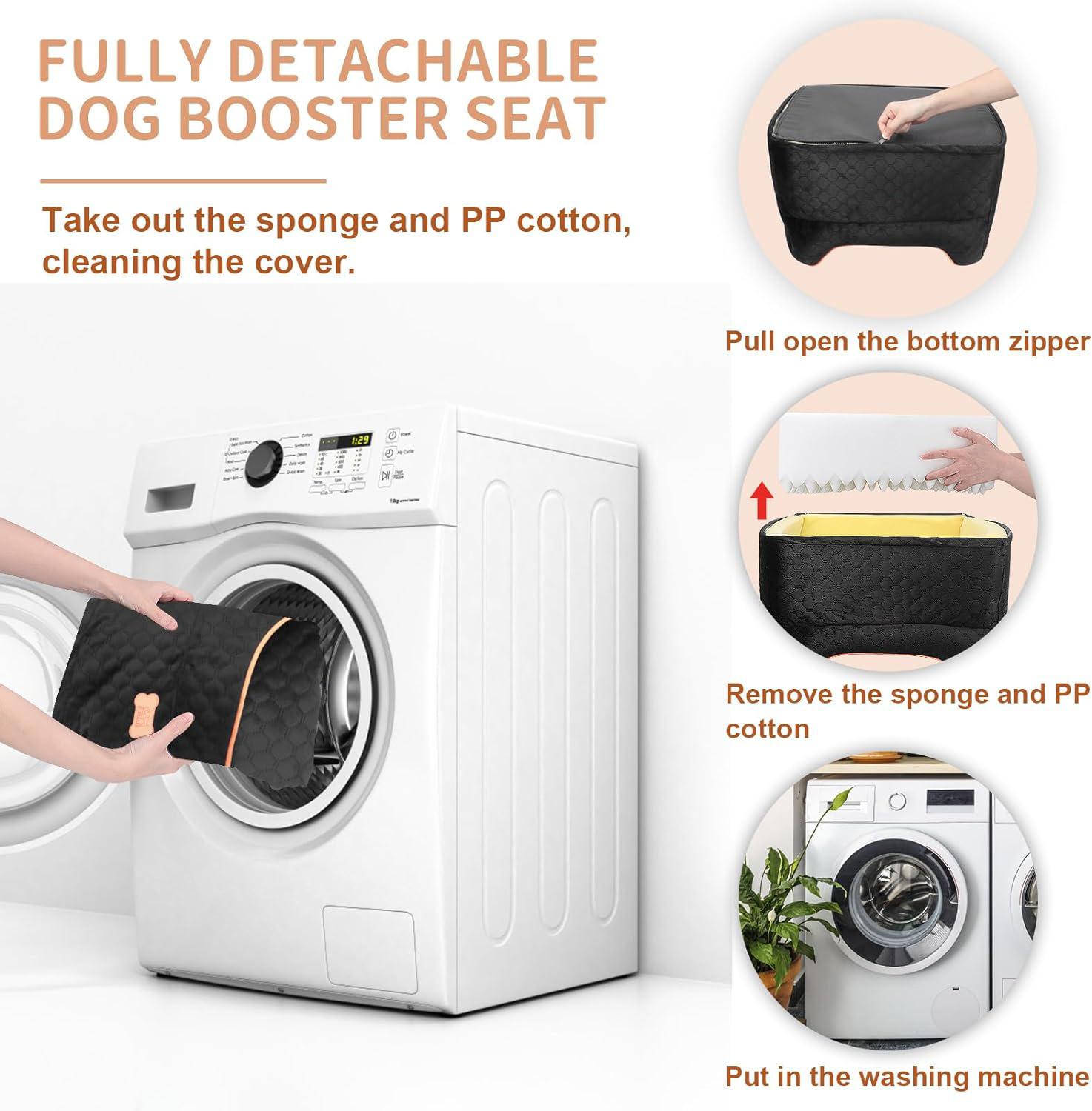 🐕 FÁCIL DE LIMPIAR - Mantener limpio nuestro asiento para perro para coche es sencillo. Use una aspiradora para eliminar pelo de mascota o polvo, luego lave quitando la funda y retire fácilmente la esponja. Tenga en cuenta que la espuma interior no es lavable