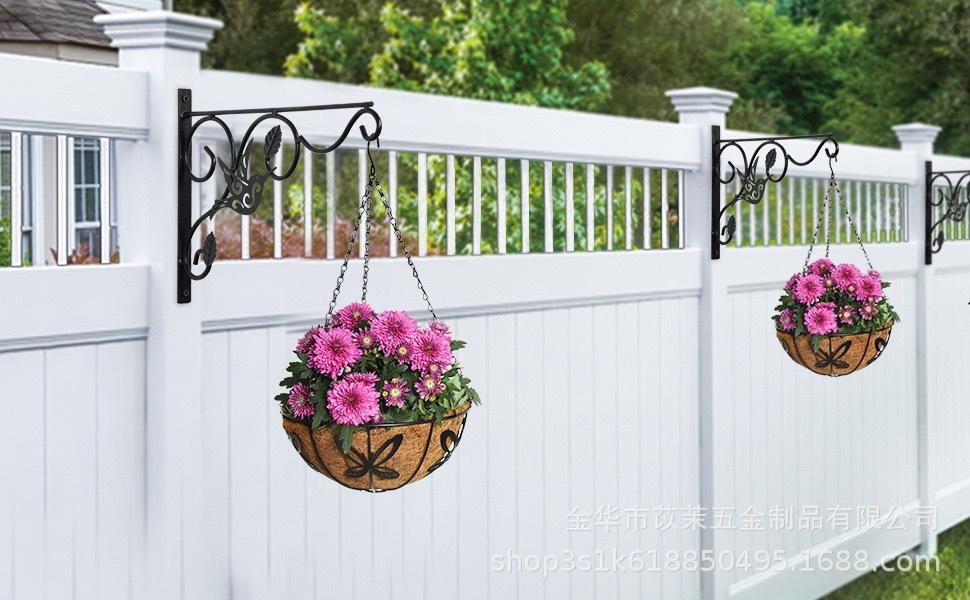 Cesta de flores de hierro montada en la pared, decoración de pared, cesta colgante, estante para flores, estante colgante para flores, sala de estar, balcón, planta verde, gancho colgante