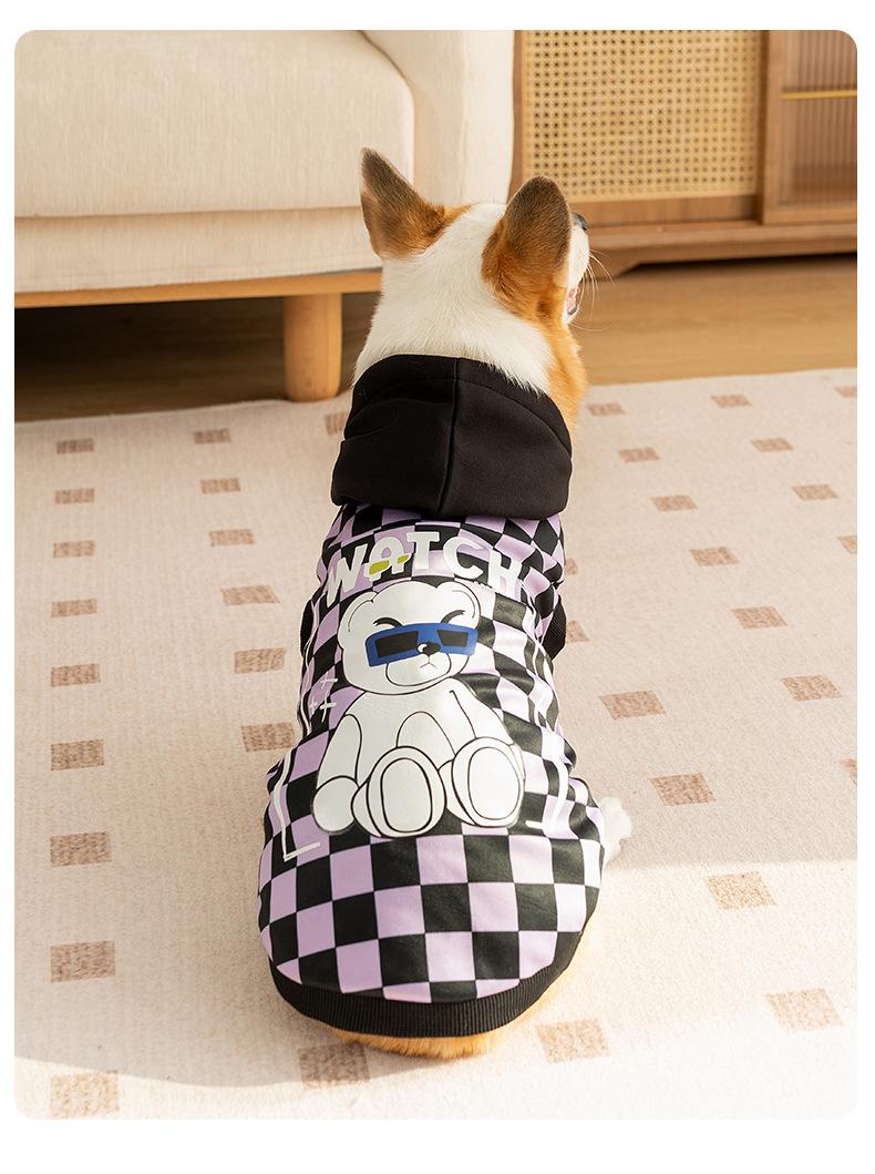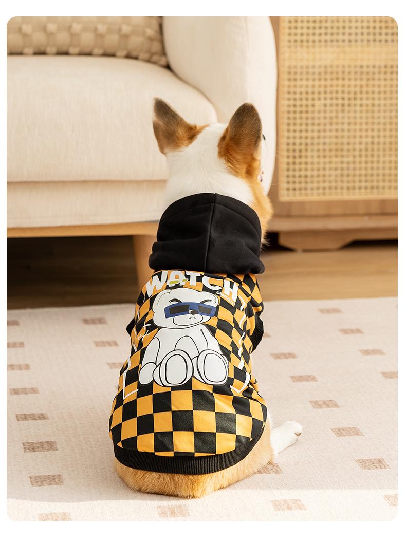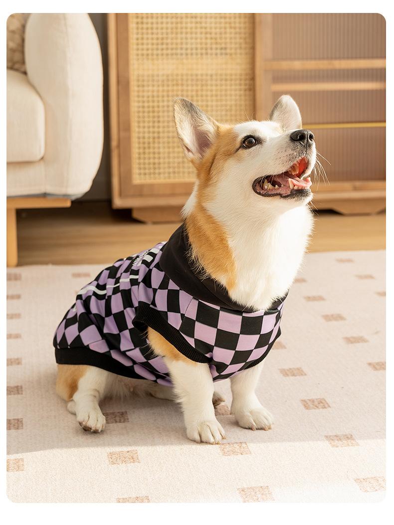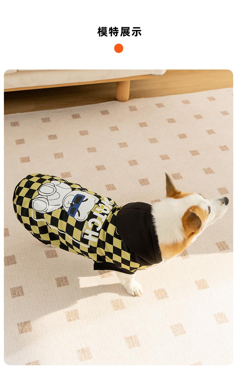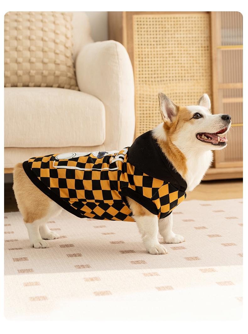 Ropa para Perro de Otoño e Invierno Sudadera Corgi con Capucha Estampada a Cuadros Cool de Moda para Salir Tracción Ropa Cálida para Mascotas