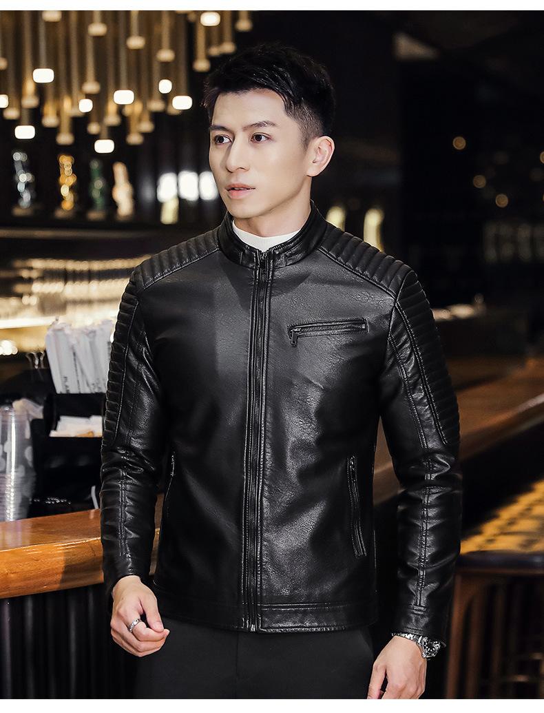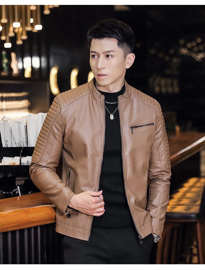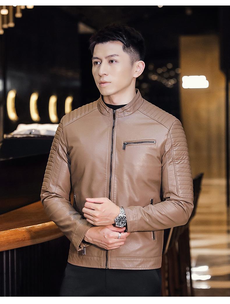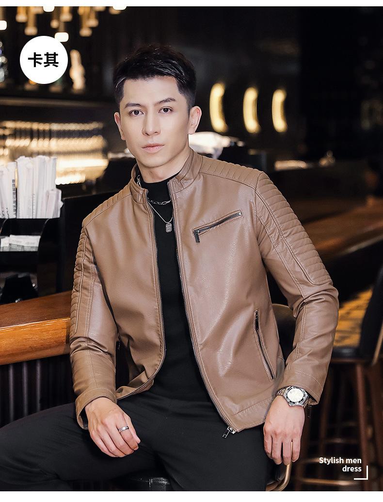 Abrigo de hombre moderno de corte ajustado que combina con todo, nuevo abrigo de cuero PU de primavera y otoño, cuello alto, chaqueta de motociclista, abrigo de hombre, abrigo para hombre
