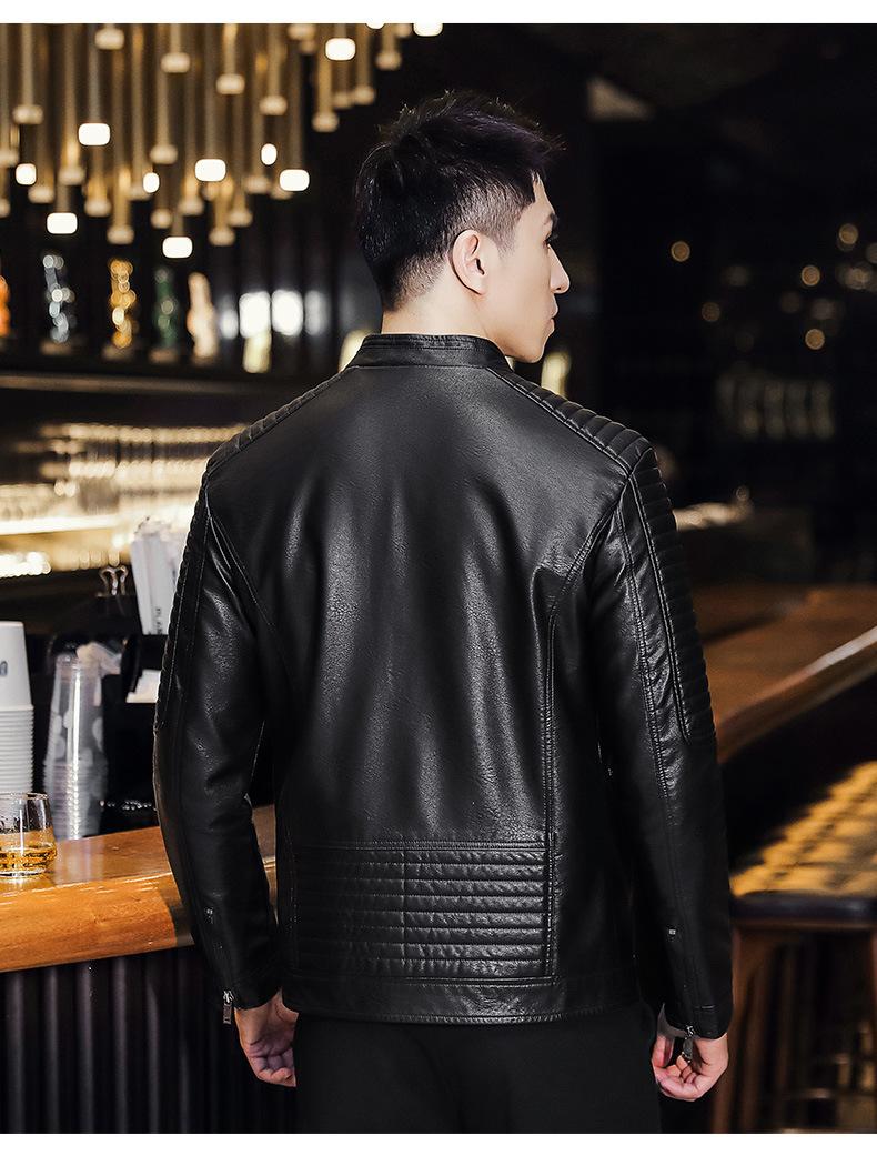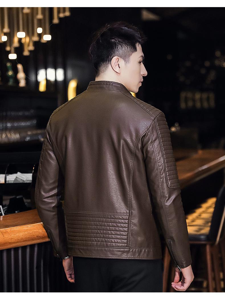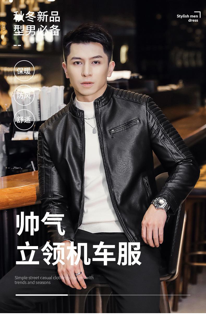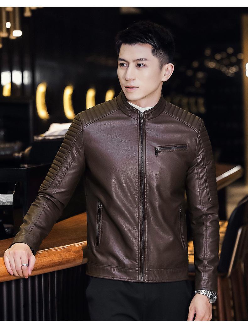 Abrigo de hombre moderno de corte ajustado que combina con todo, nuevo abrigo de cuero PU de primavera y otoño, cuello alto, chaqueta de motociclista, abrigo de hombre, abrigo para hombre