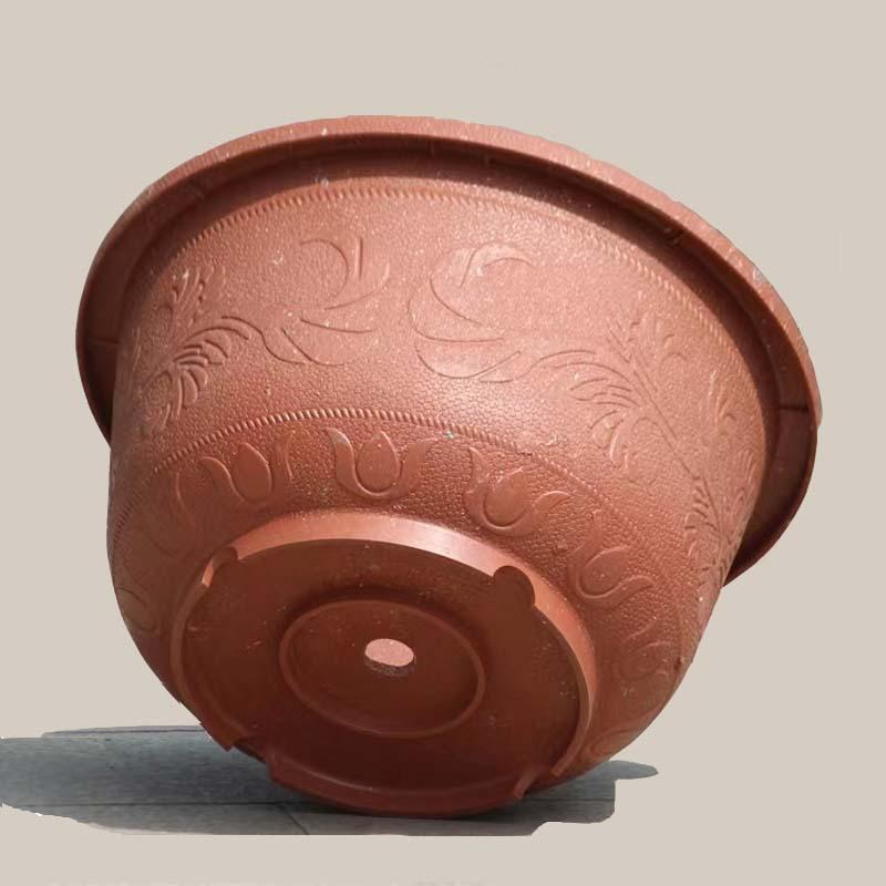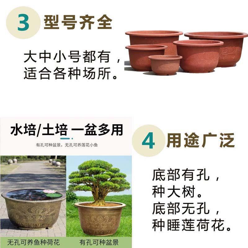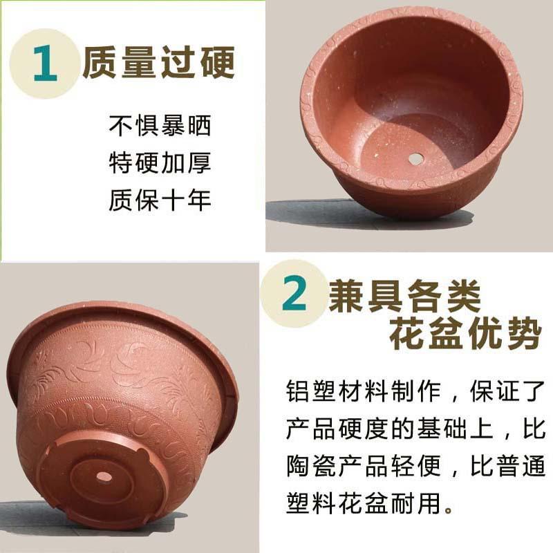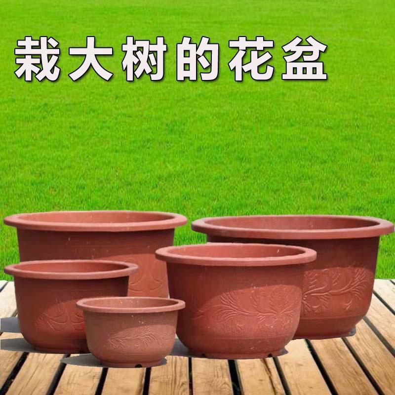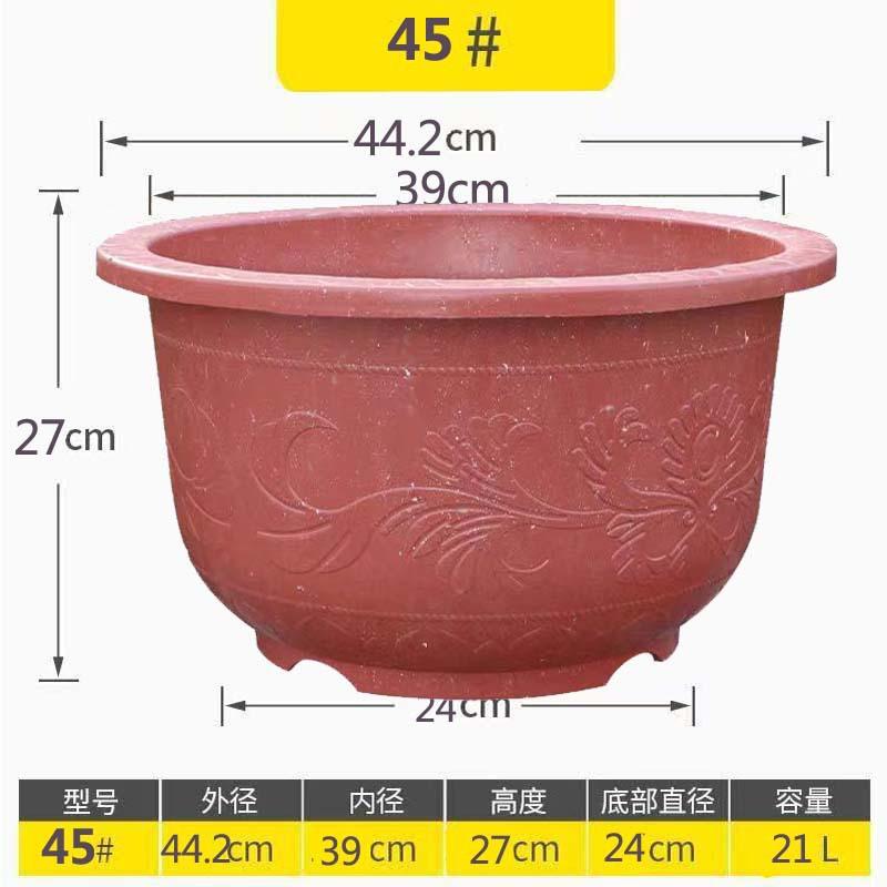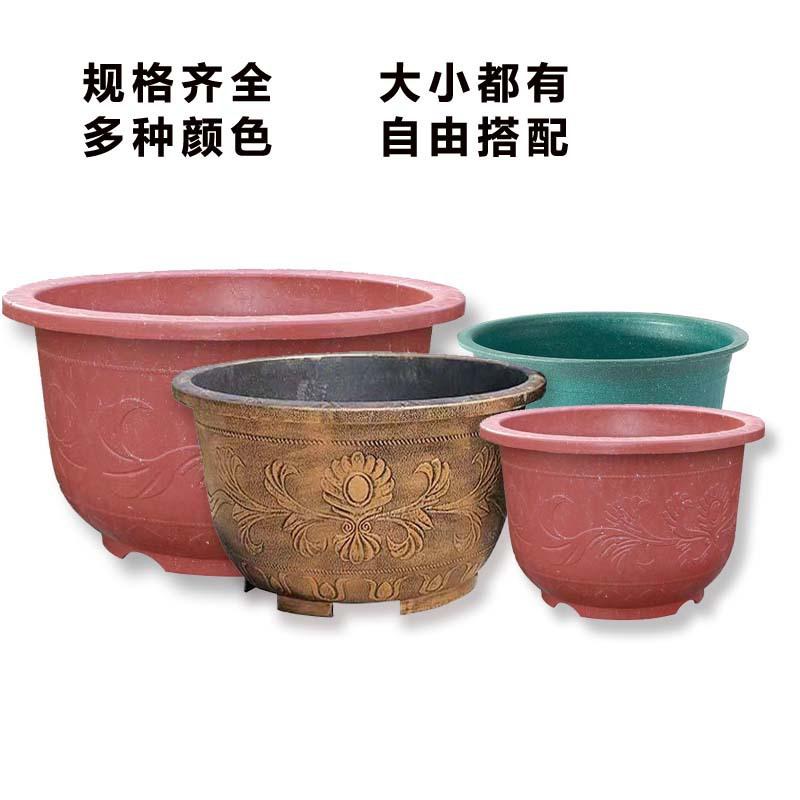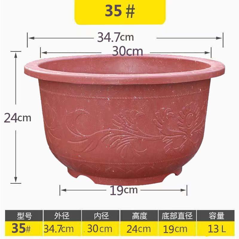 Maceta grande redonda de resina gruesa para exteriores, maceta de árbol grande, maceta de aluminio rojo, plástico, con agujero, maceta hidropónica no porosa.