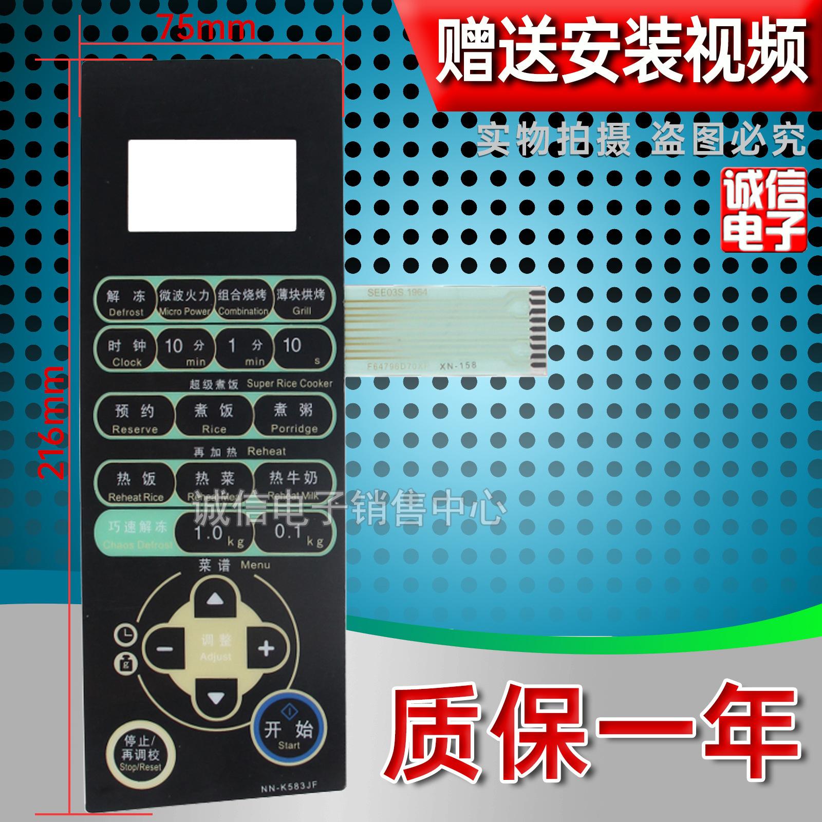 Pegatina para la superficie de control del botón táctil del interruptor de película del panel del horno microondas NN-K583JF NN-K583MF