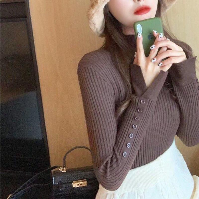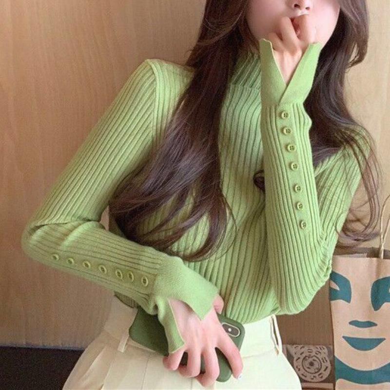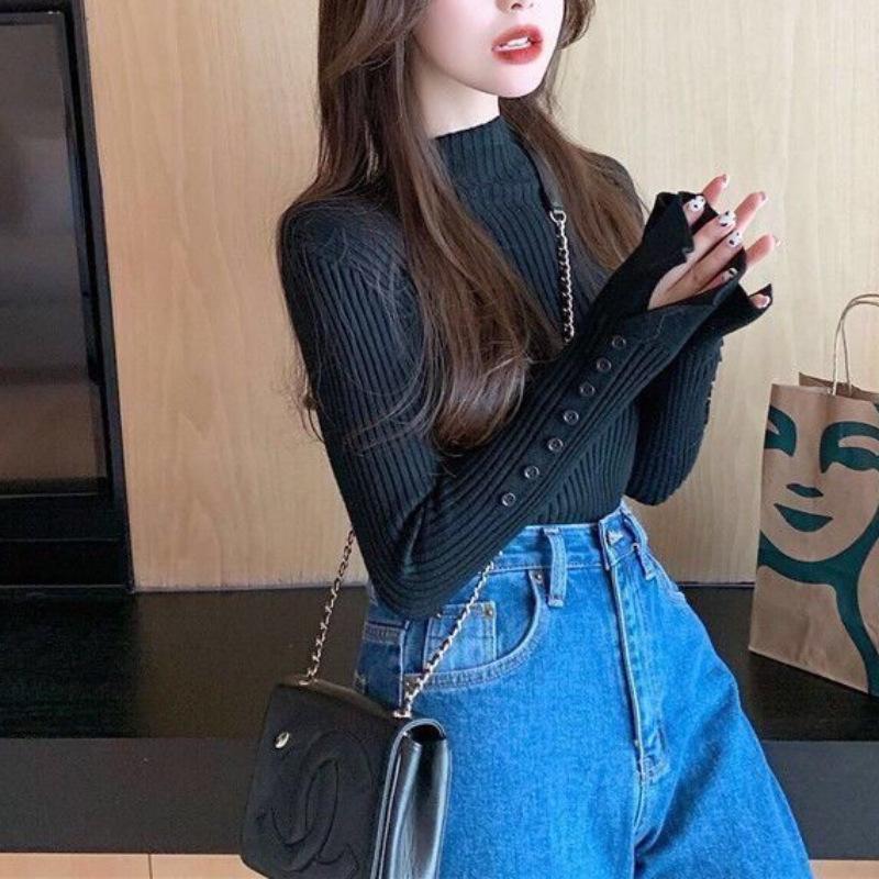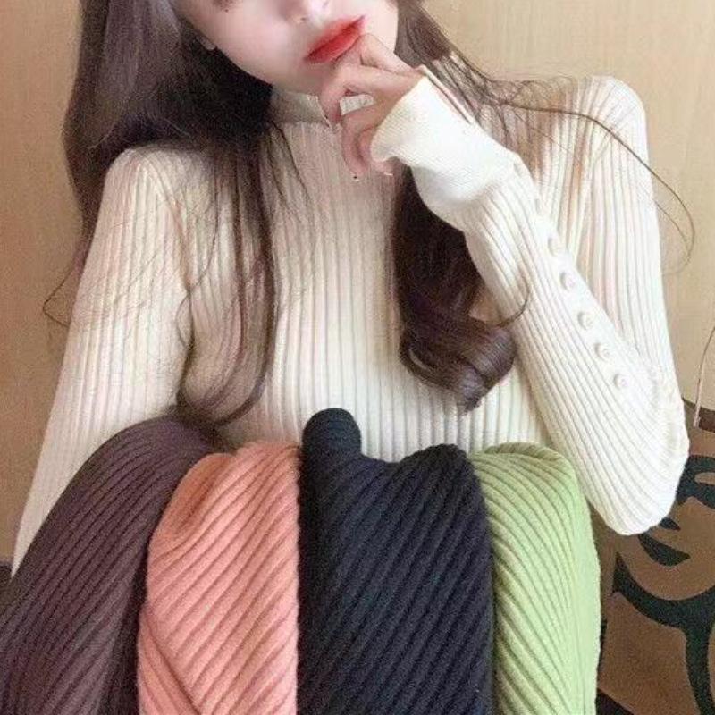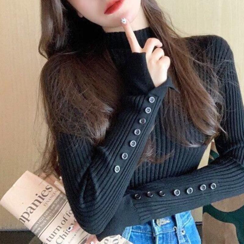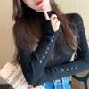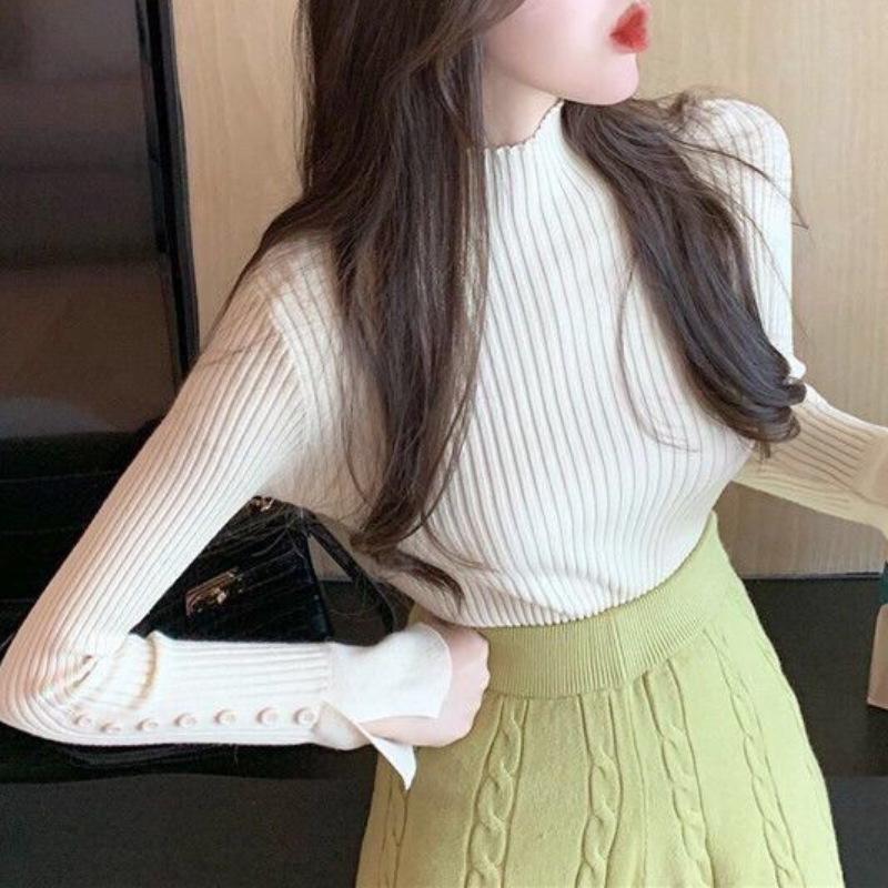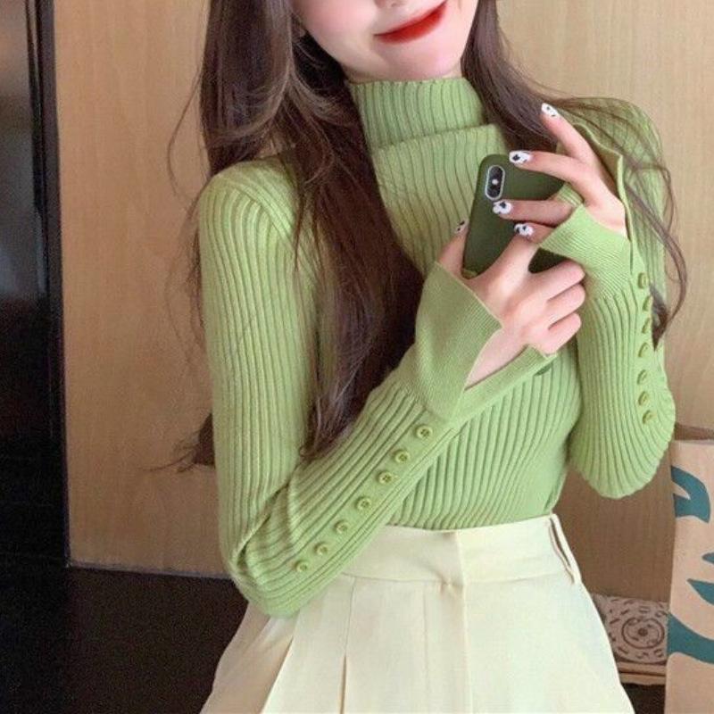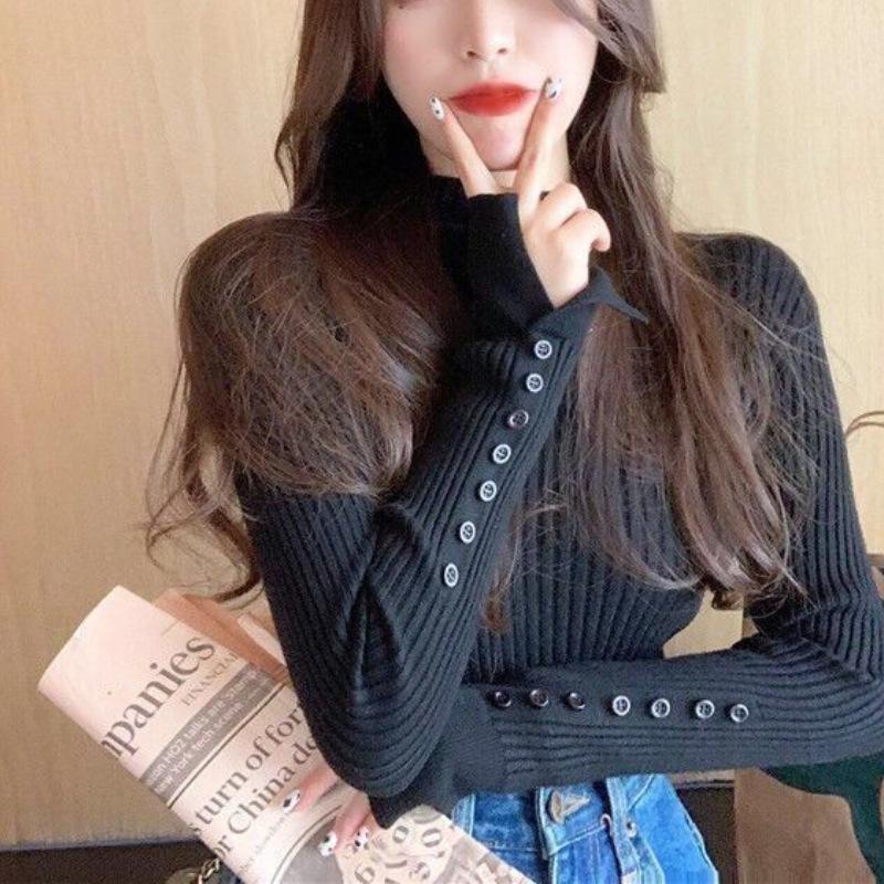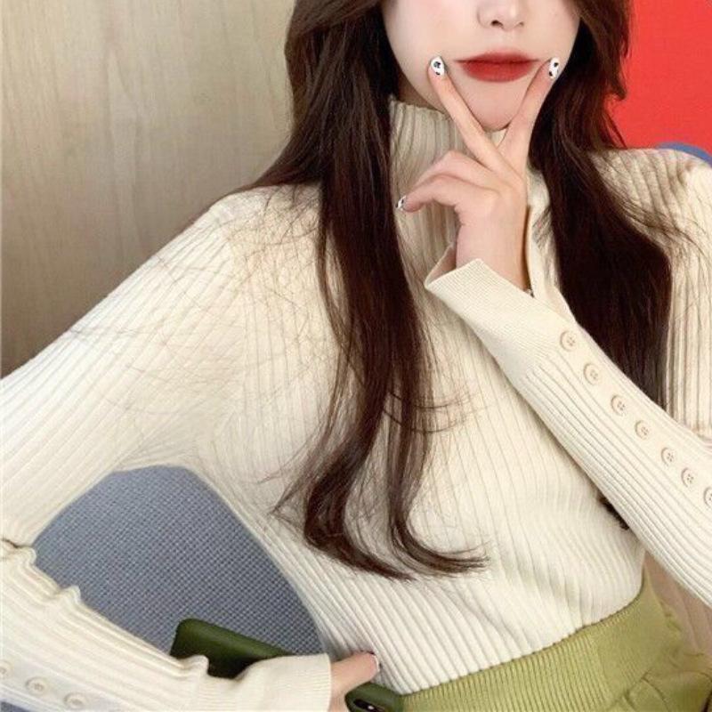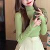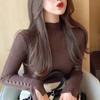 Camisa de punto para mujer 2023 otoño e invierno Nuevo suéter versátil de cuello alto medio con manga larga ajustada interior para mujer