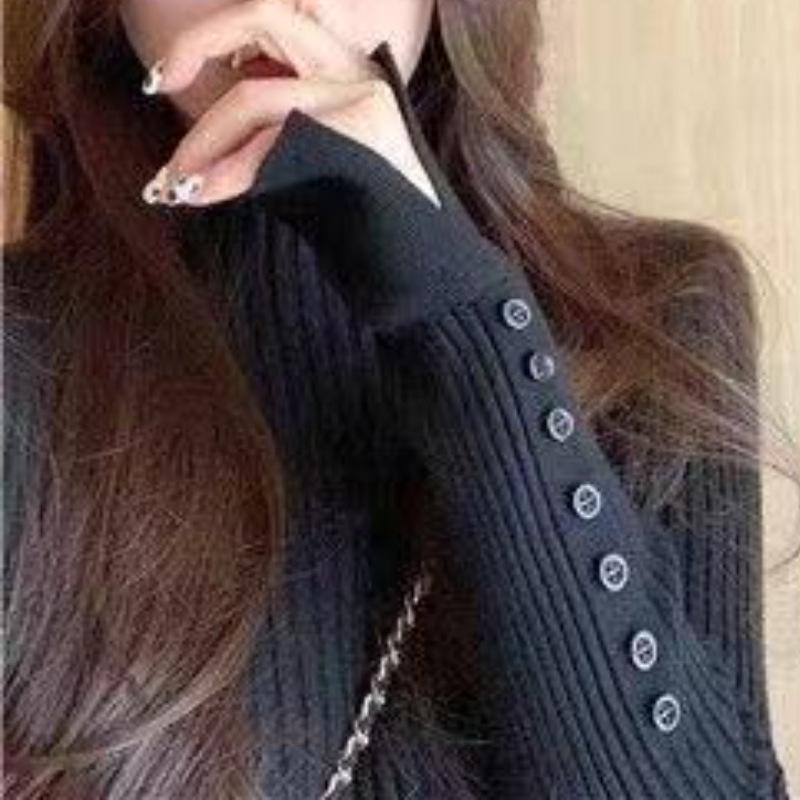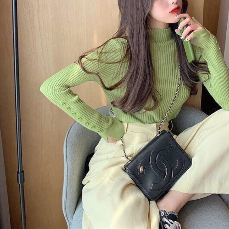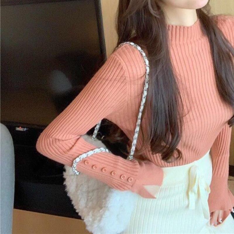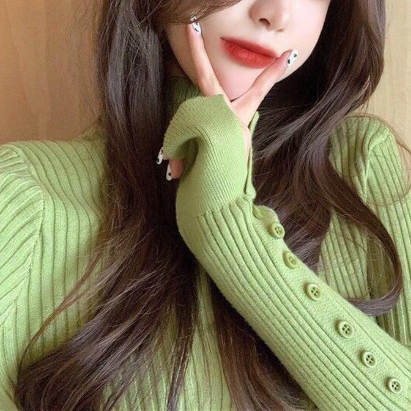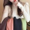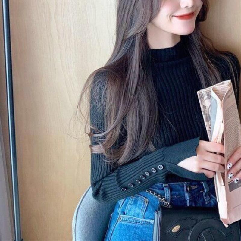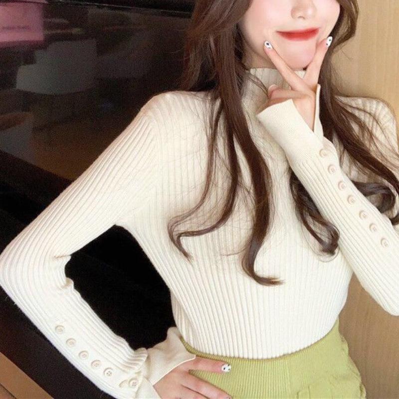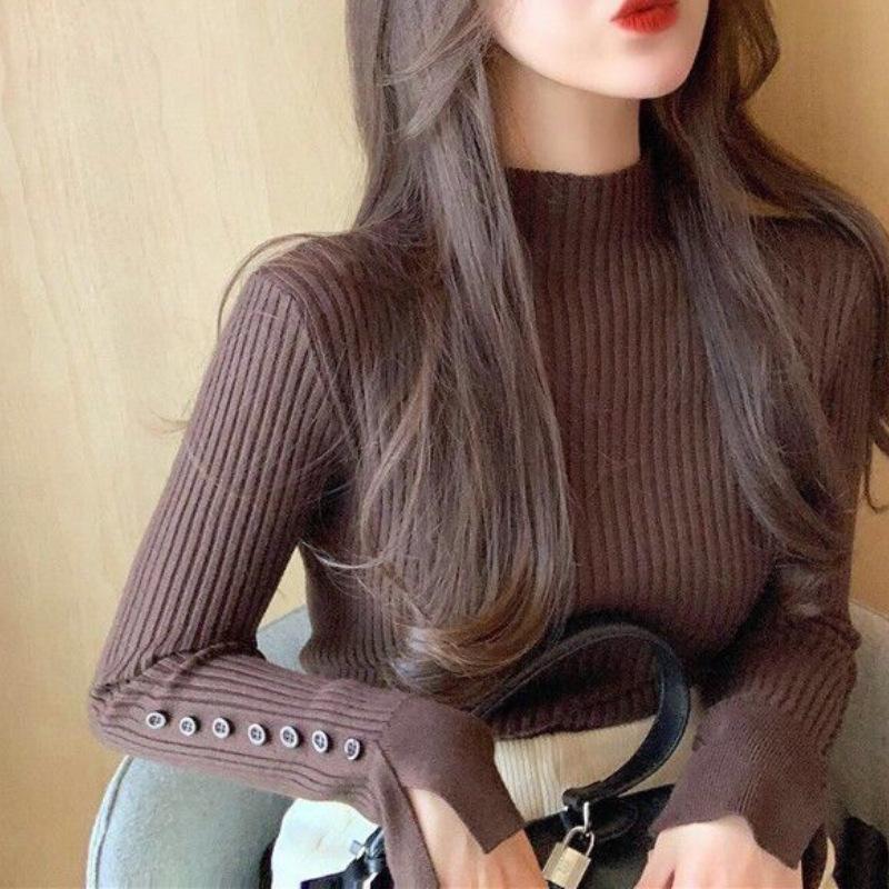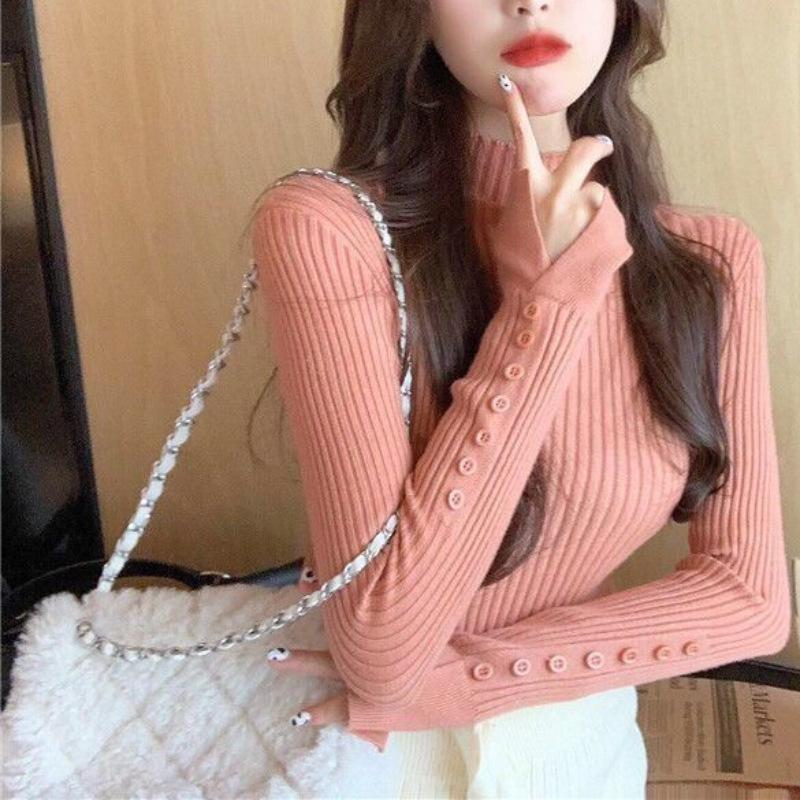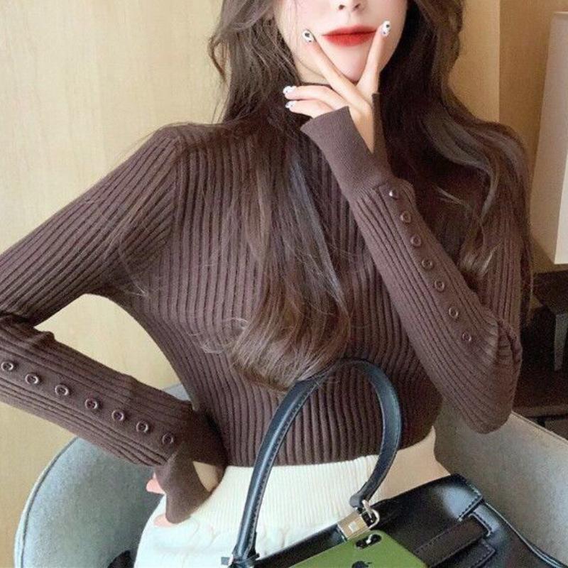 Camisa de punto para mujer 2023 otoño e invierno Nuevo suéter versátil de cuello alto medio con manga larga ajustada interior para mujer