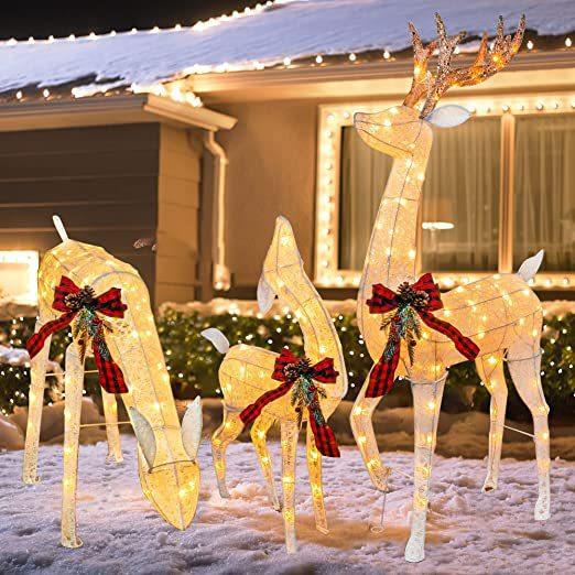 Luz LED Decorativa Luminosa de Navidad para Césped, Patio, Hierro, Cristal Brillante, Trineo, Ciervo Decorativo de Navidad, Remolque