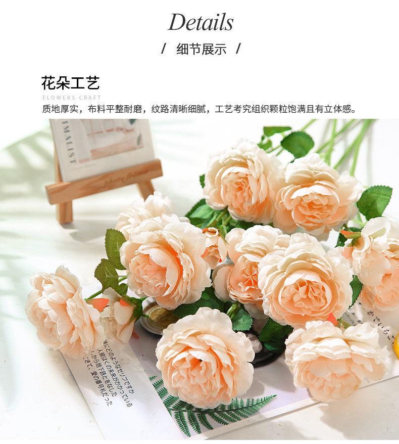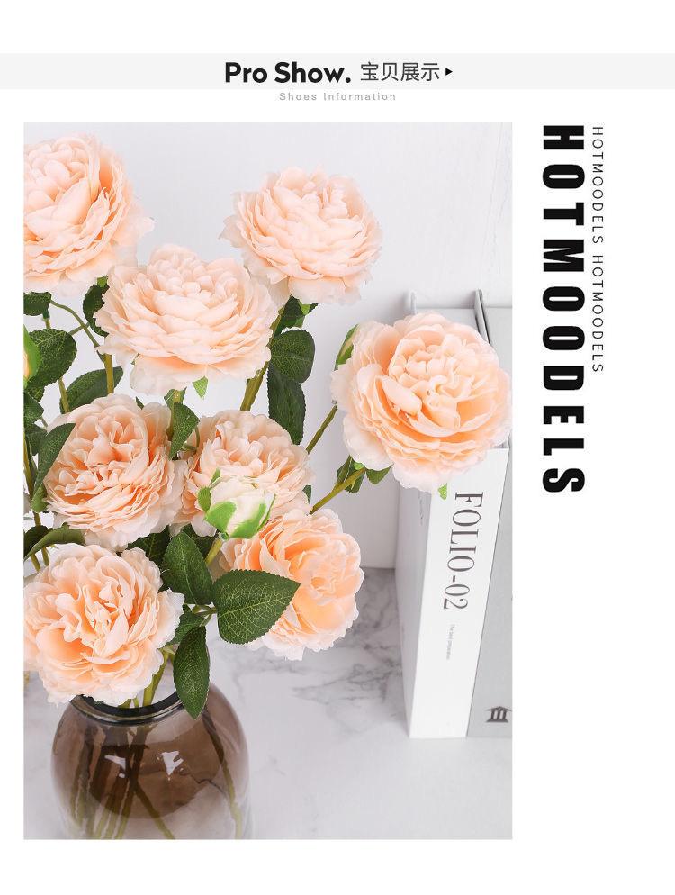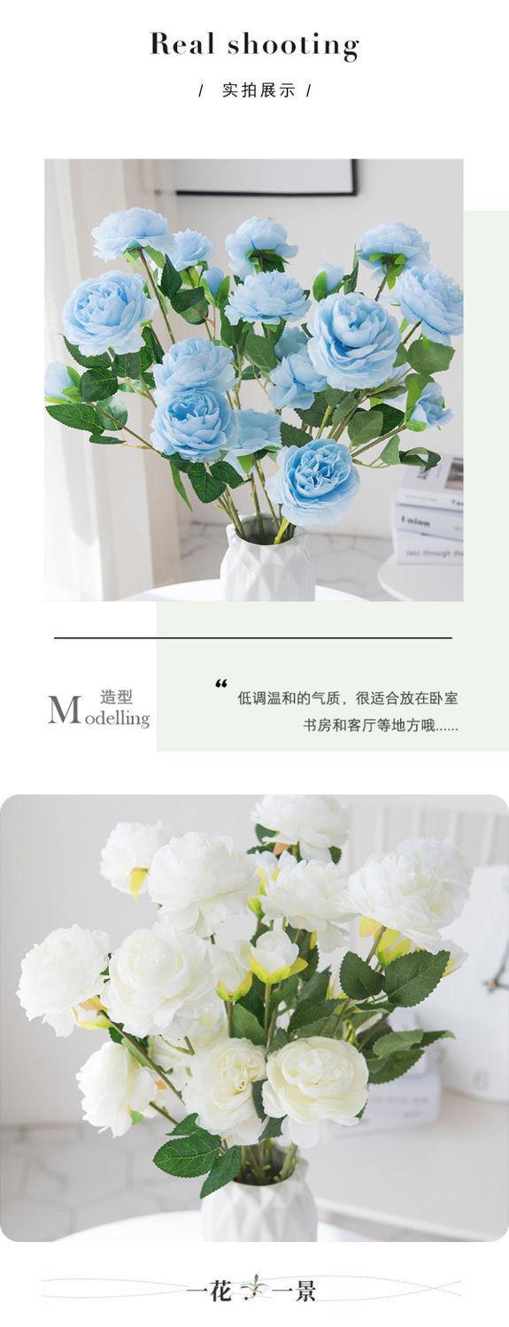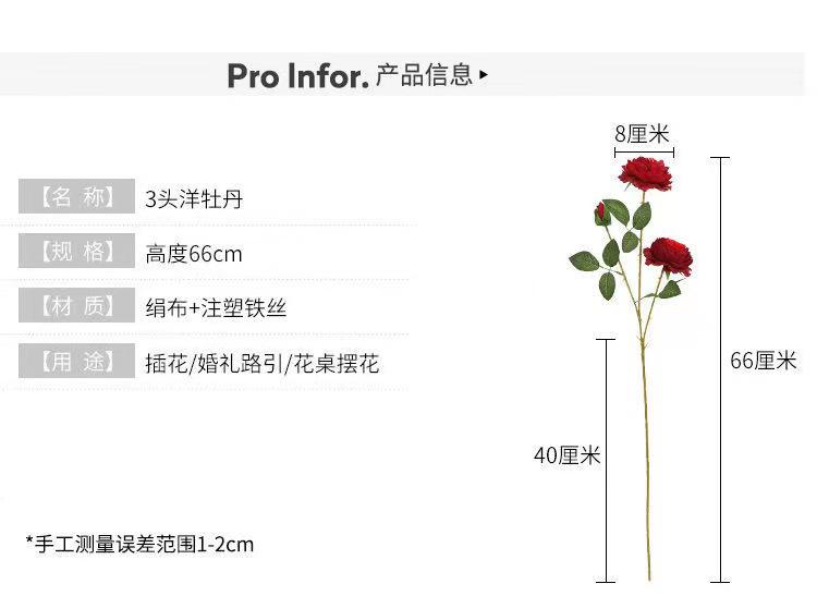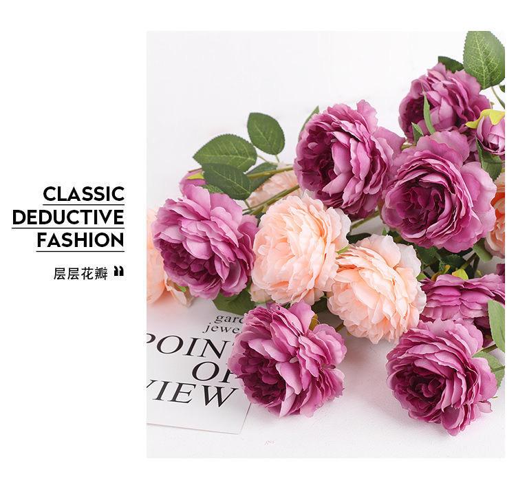 Peonía Occidental estilo Europeo Flor de Peonía Simulada de 3 cabezas Flor para Decoración de Salón de Bodas Hilera de Flores Flor Artificial Arreglo Floral para Mesa de Hogar