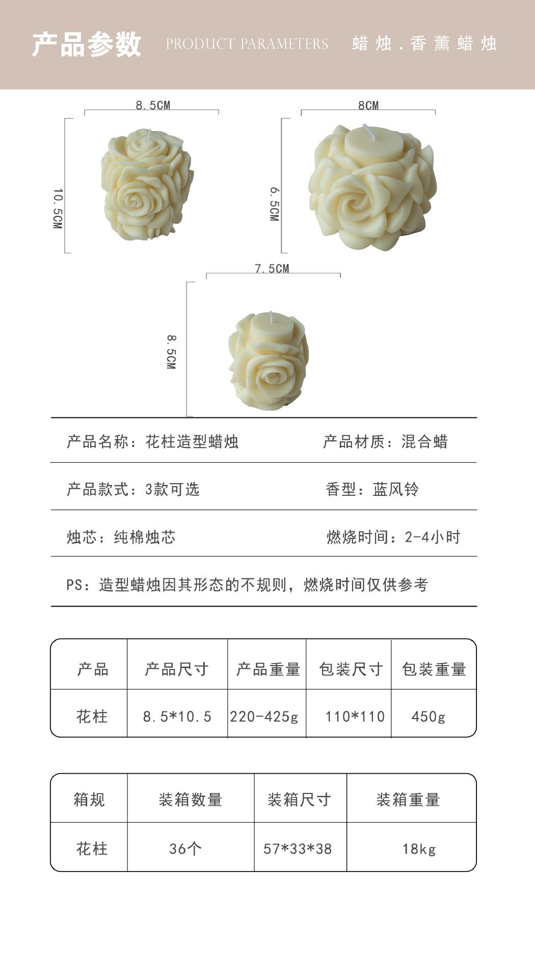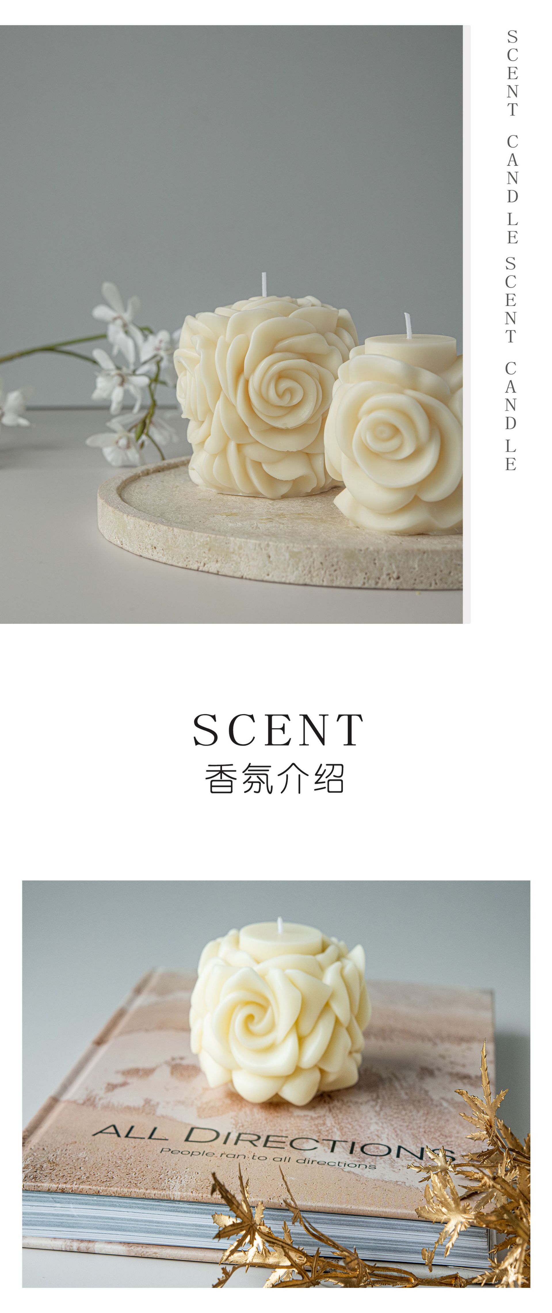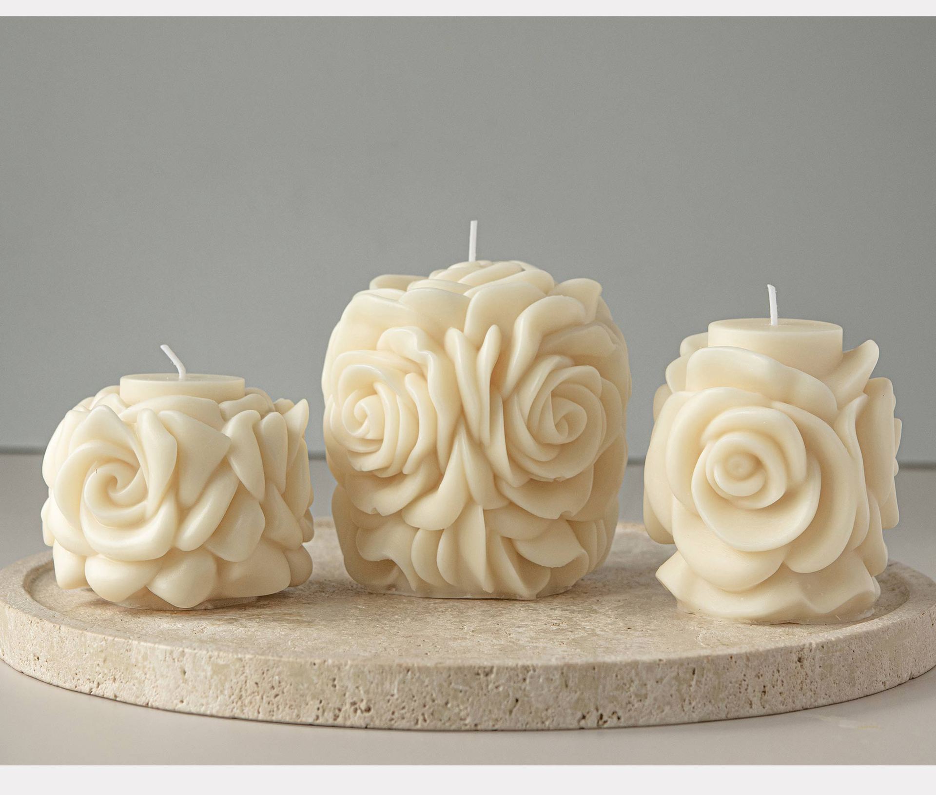 Type A rose shaped candle, Type B rose shaped candle, Type C rose shaped candle