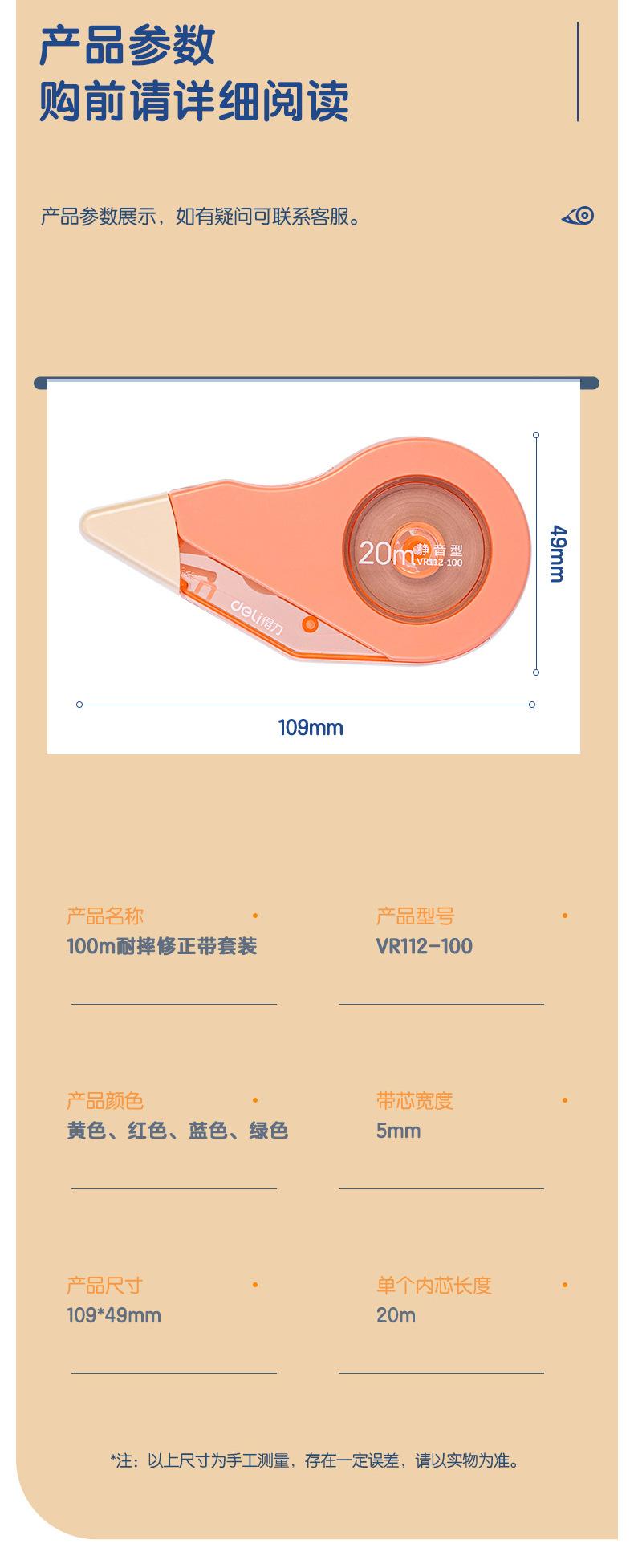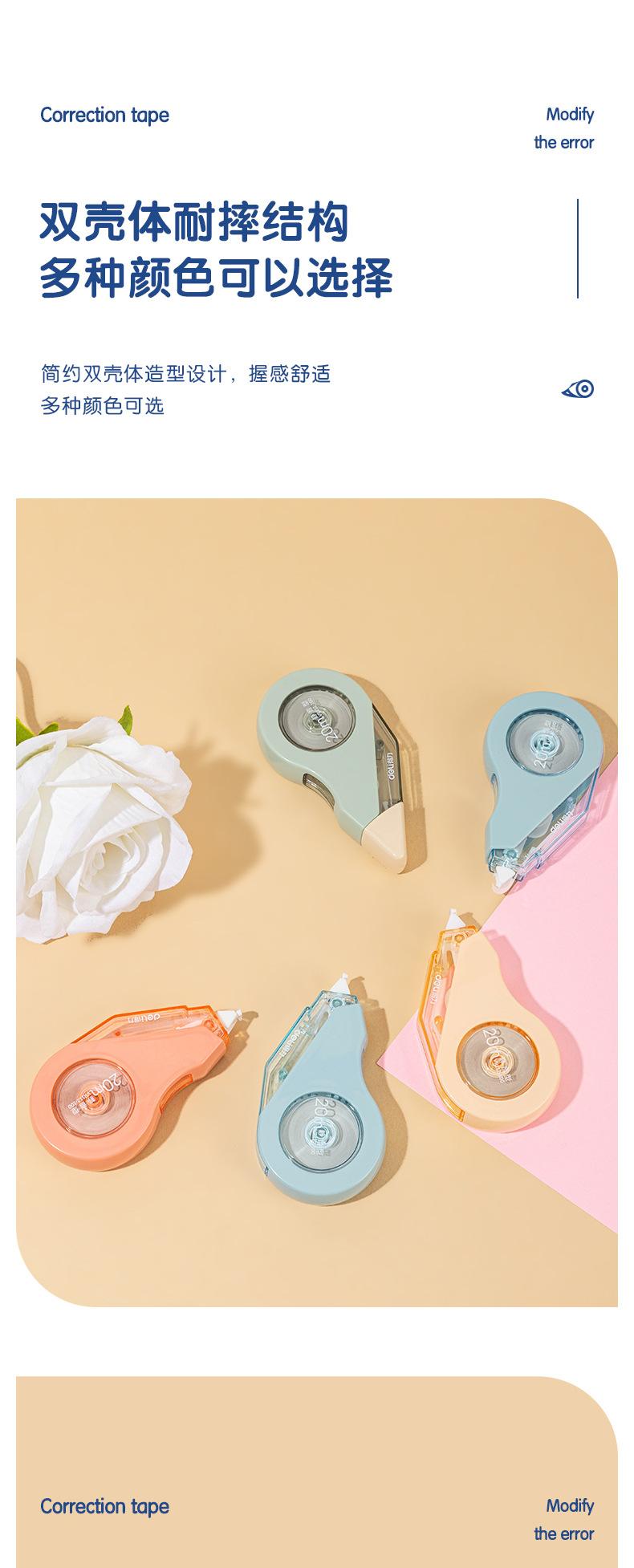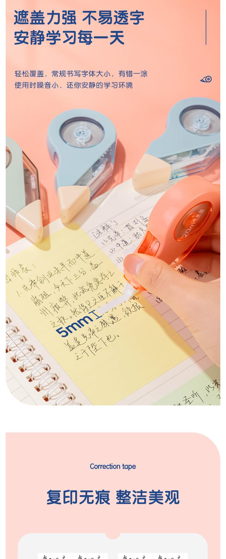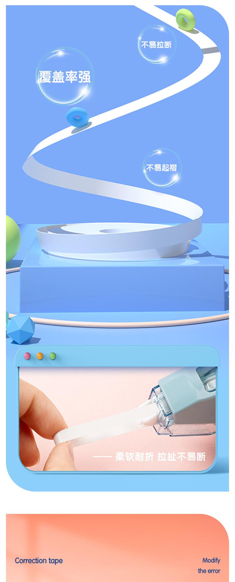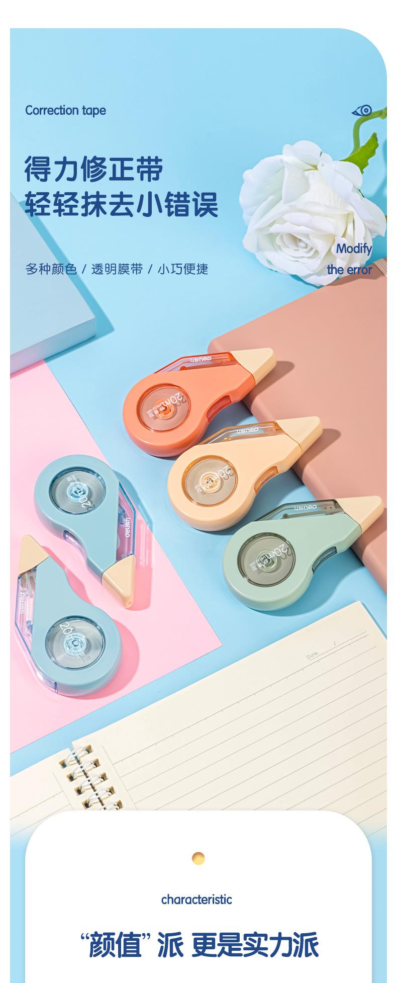 Deli VR112- Cinta Correctora Duradera Extendida de 100m, Cinta Correctora Pequeña y Linda, Cinta Correctora Silenciadora Resistente a Caídas
