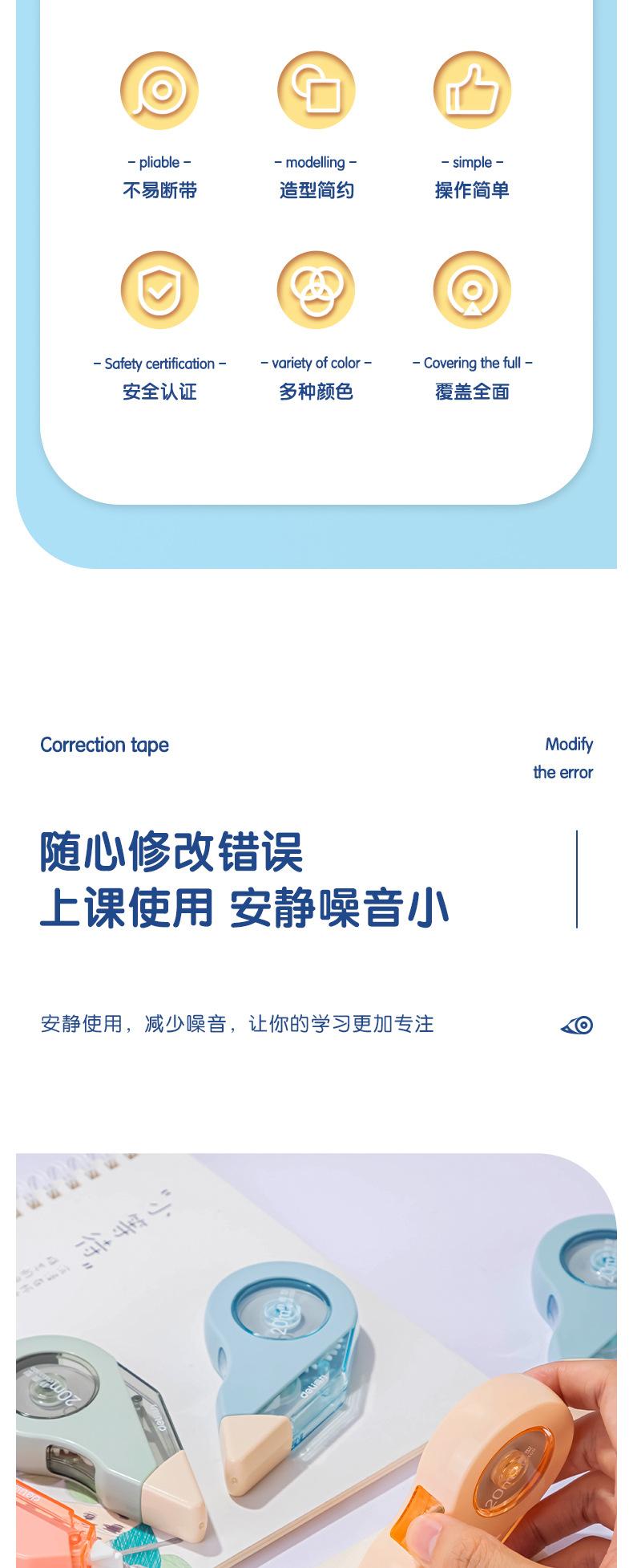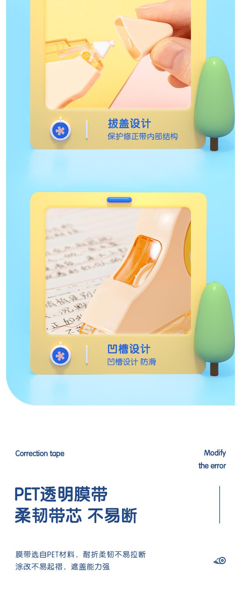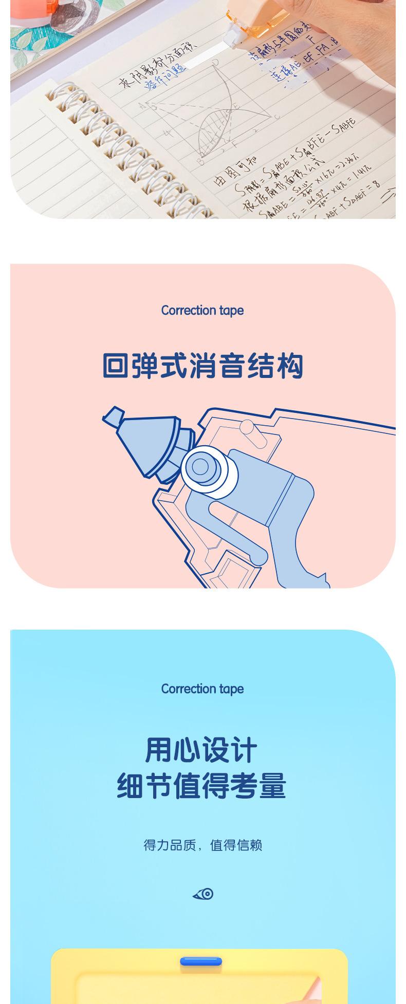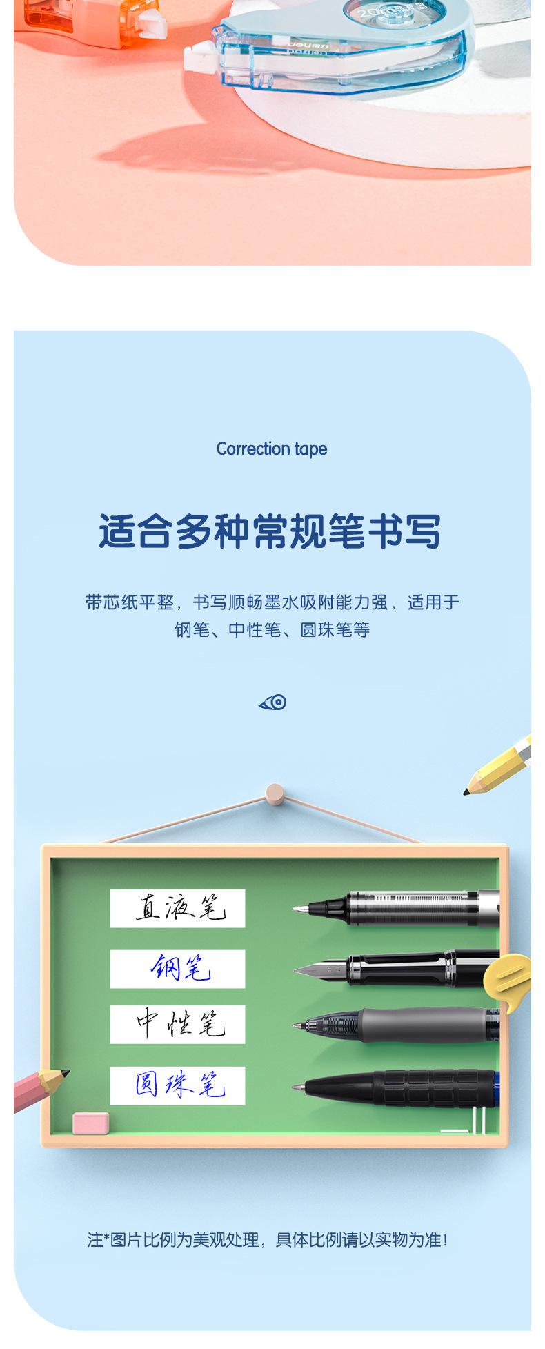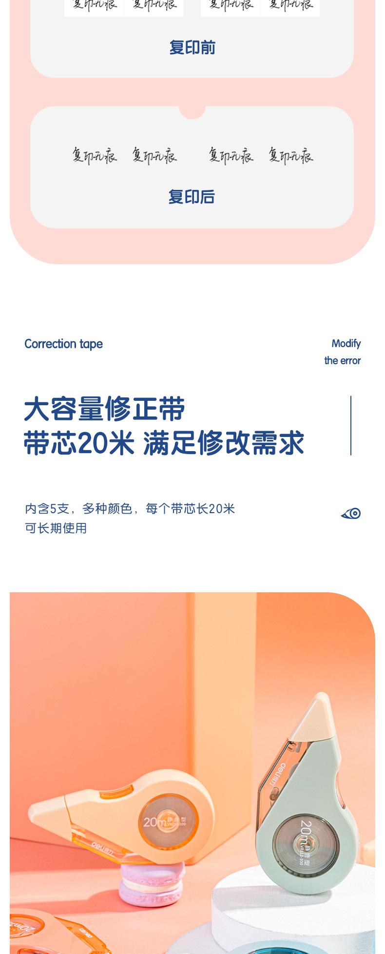 Deli VR112- Cinta Correctora Duradera Extendida de 100m, Cinta Correctora Pequeña y Linda, Cinta Correctora Silenciadora Resistente a Caídas