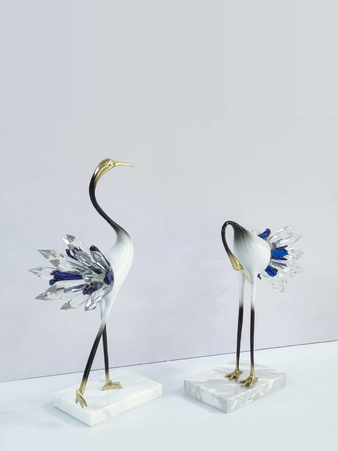 Adornos de Grulla de Cristal Moderno de Lujo Ligero Estilo Chino Nuevo Sala de Estar de Casa Entrada Vinera Regalo Decoración de Boda Inauguración de Casa