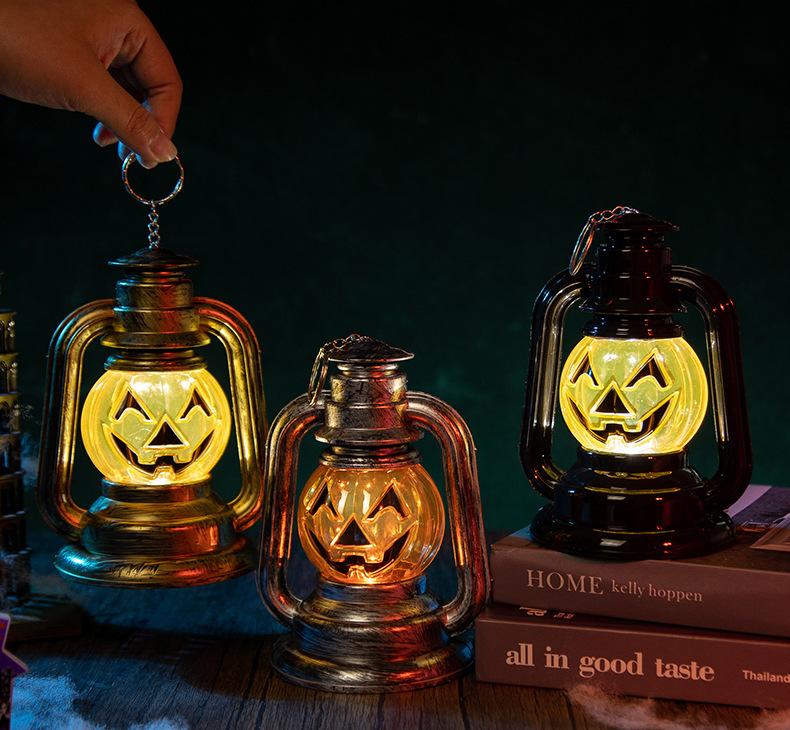 Nuevo Transfronterizo Linterna de Calabaza de Halloween Portátil Linterna Pony Lámpara de Aceite de Calabaza Retro Utilería para Fiesta del Festival de los Fantasmas Lámpara Decorativa
