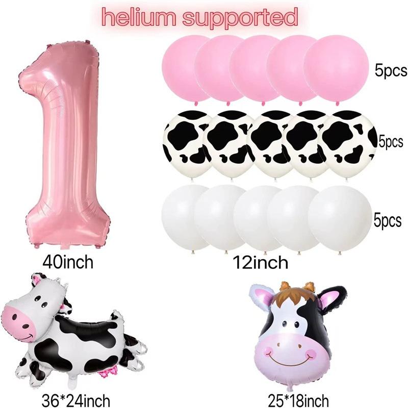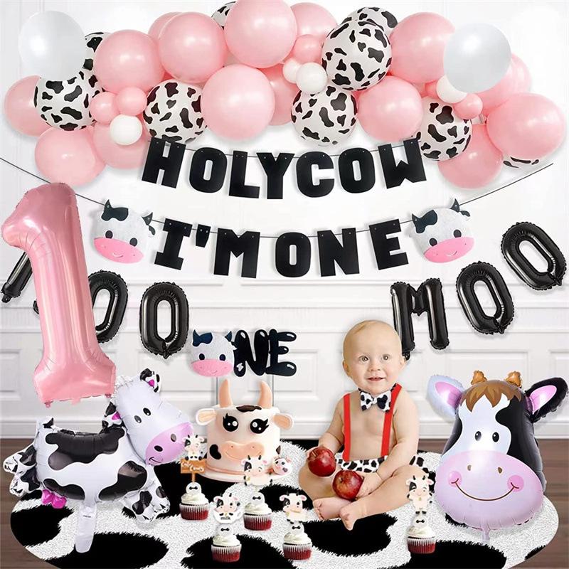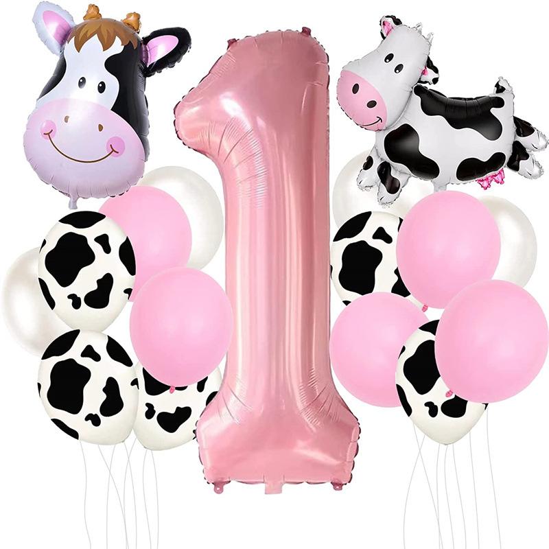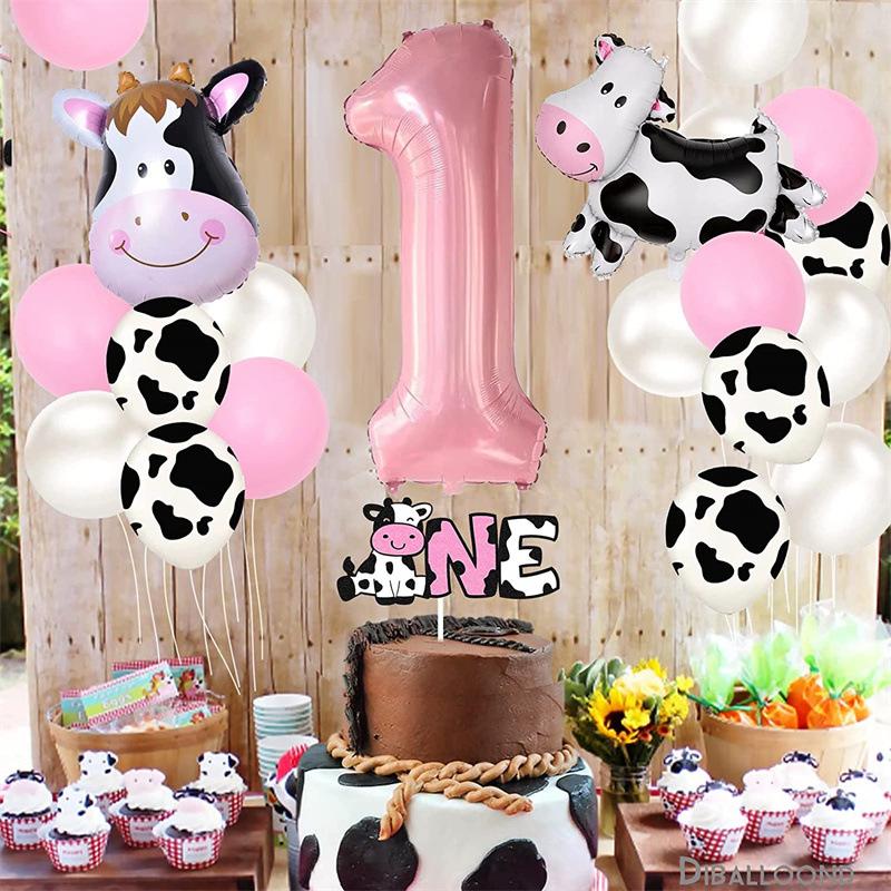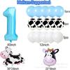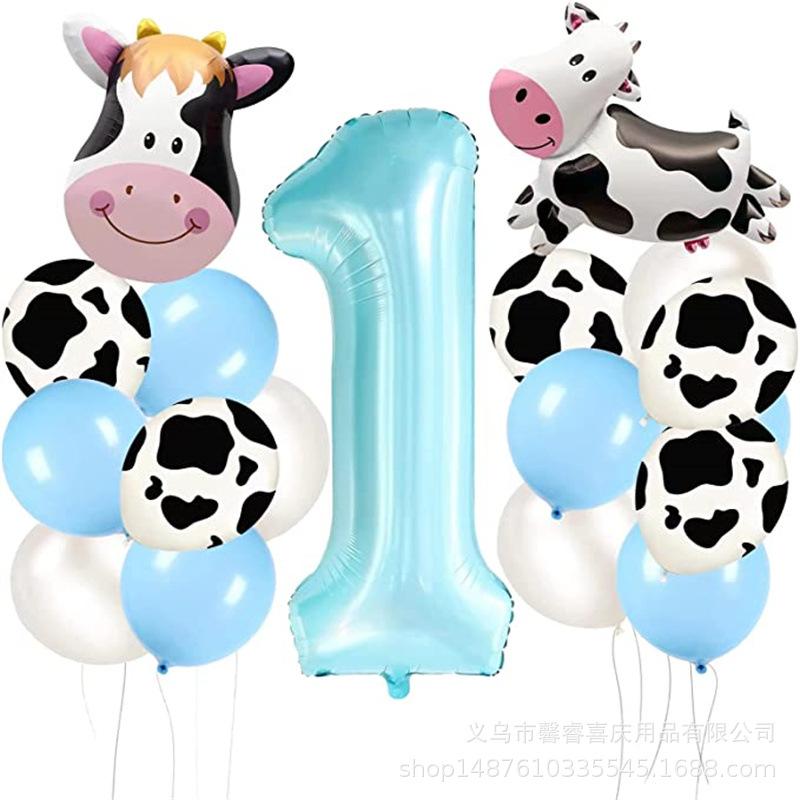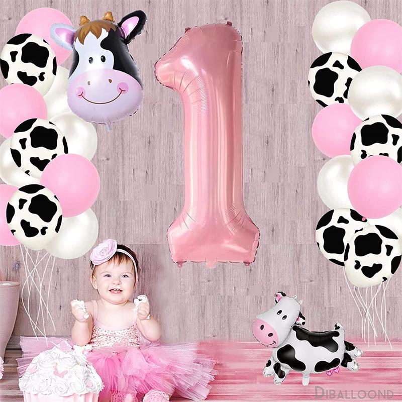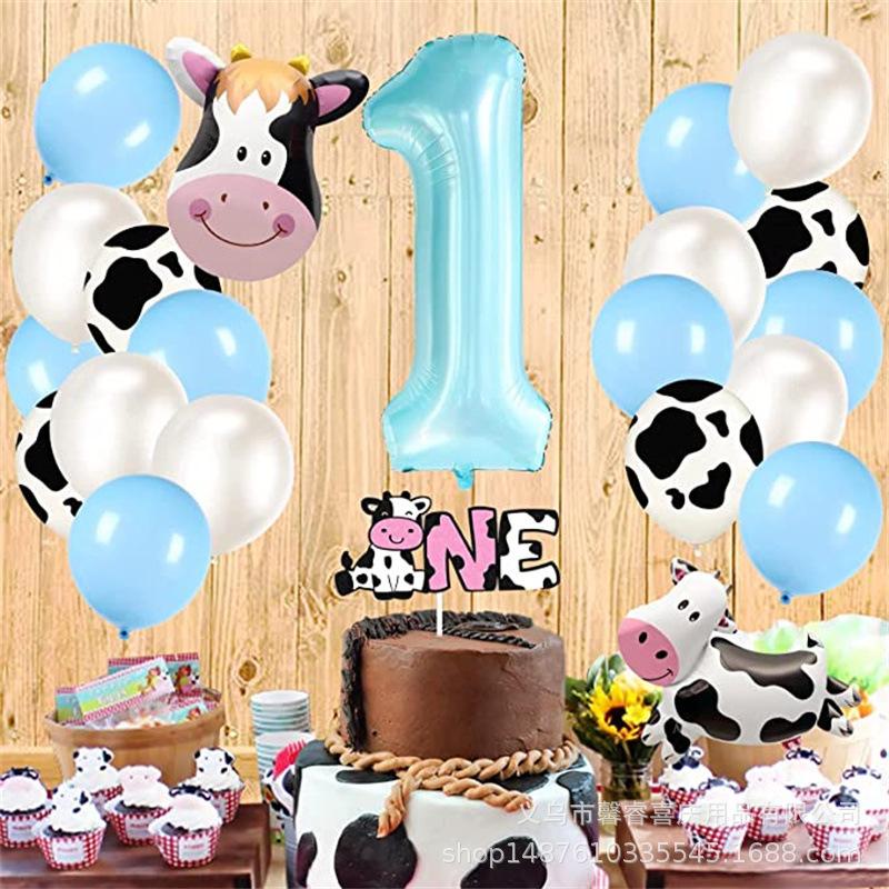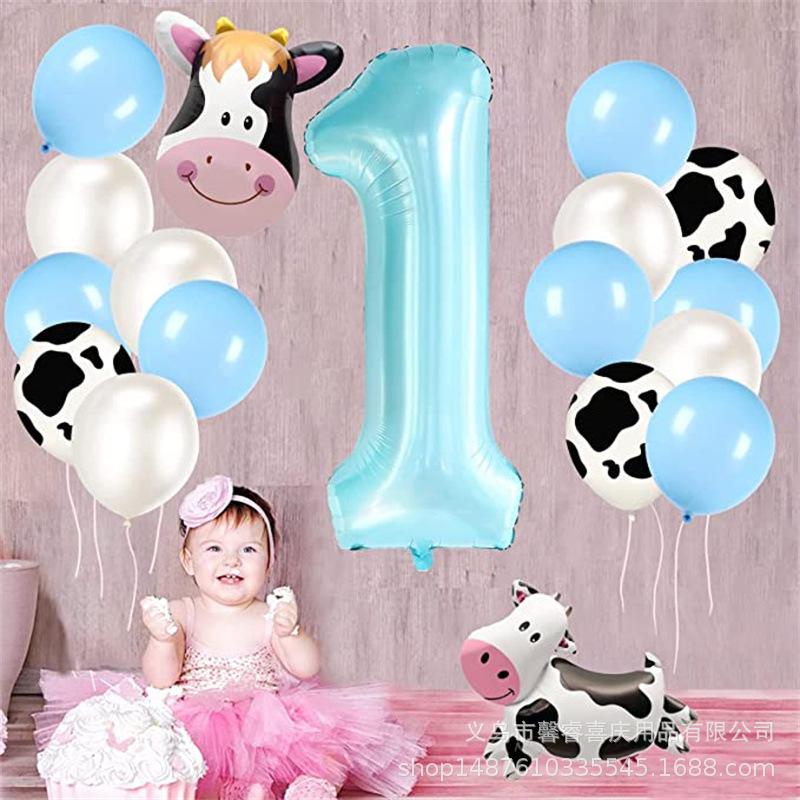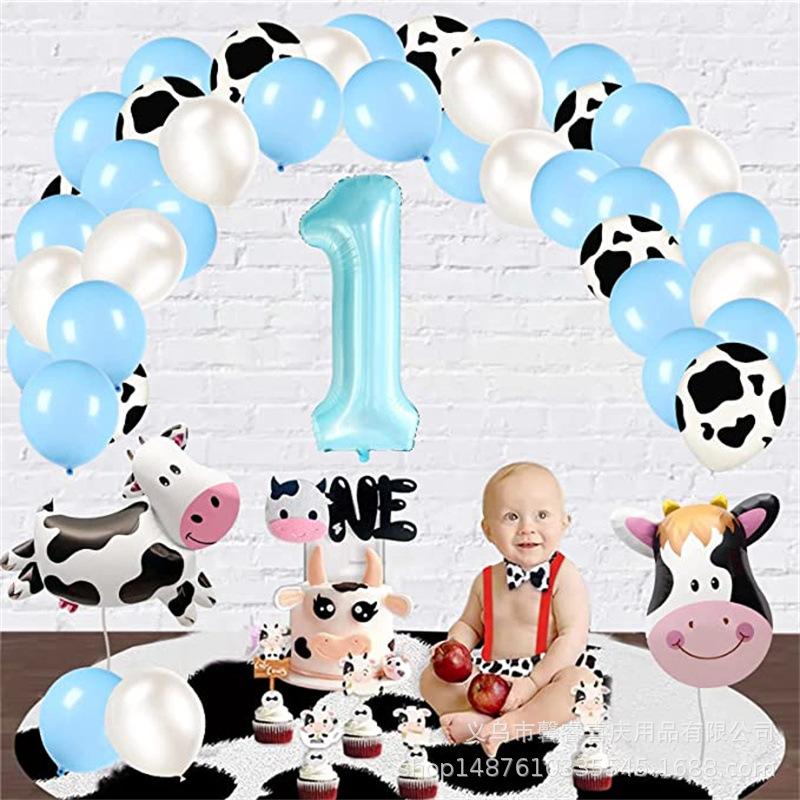 Globo azul y rosa para fiesta de cumpleaños de niños y niñas, temática de animales de granja y vaca, globo de un año