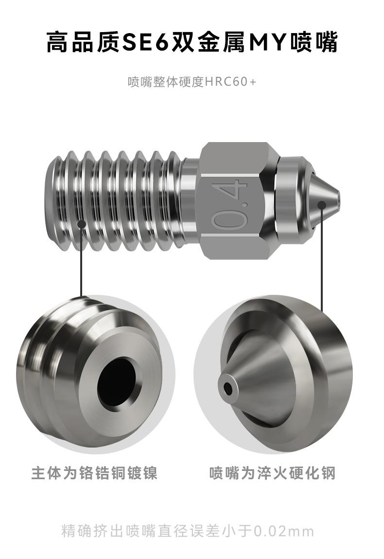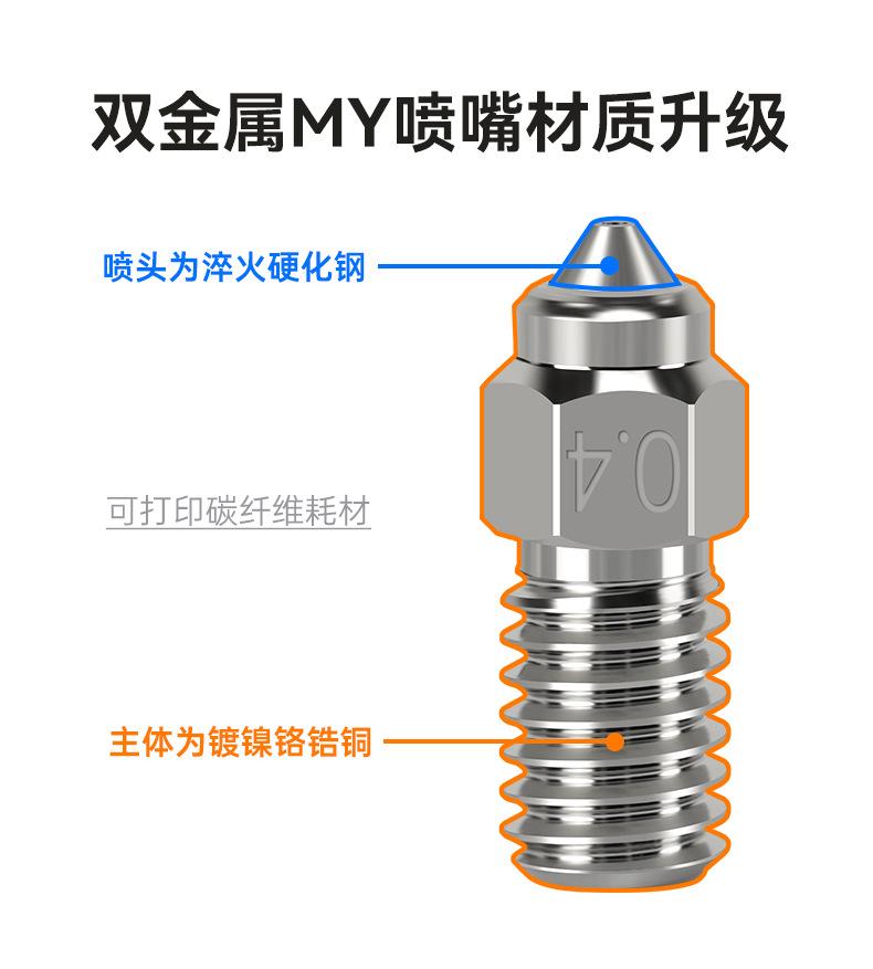 Accesorios para impresora 3D Crater 6, boquilla bimetálica MY de acero endurecido con revestimiento de cobre para boquillas de tipo creativo.