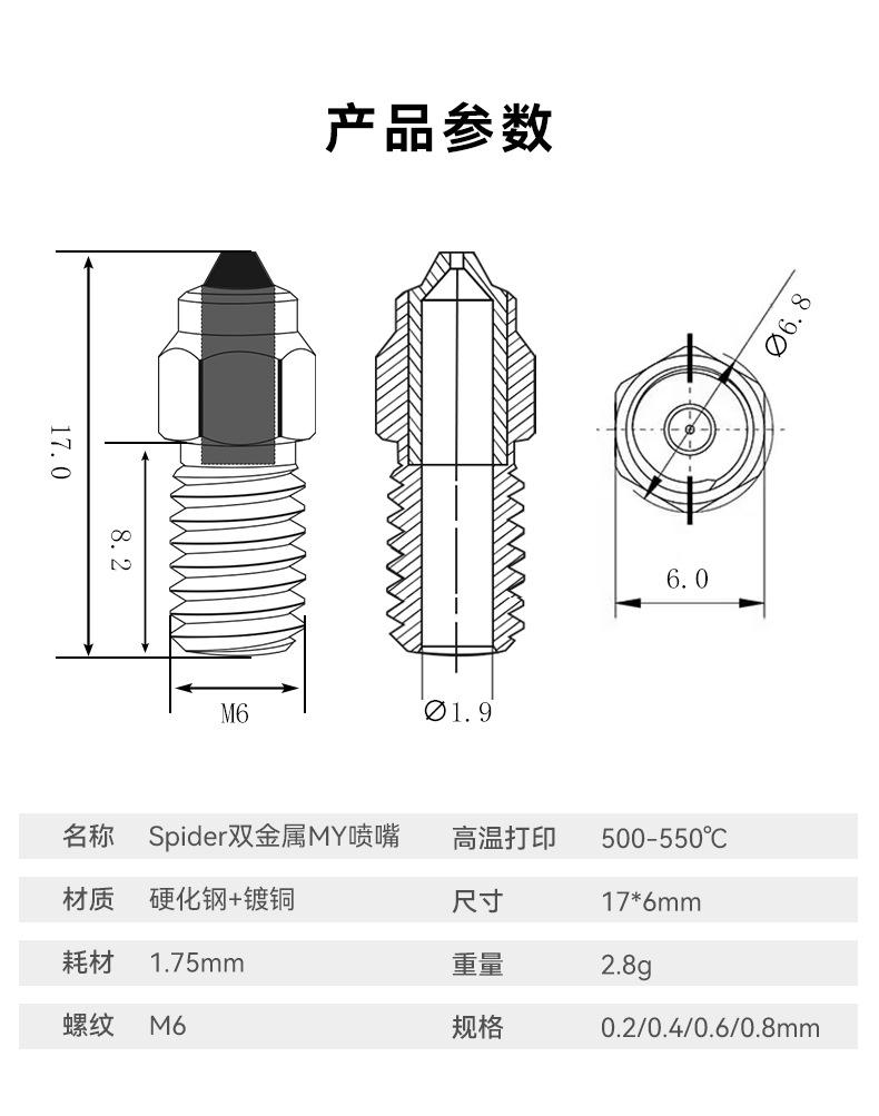 Compra Accesorios para impresora 3D Crater 6, boquilla bimetálica MY de acero endurecido con revestimiento de cobre para boquillas de tipo creativo. al por mayor en Joom.pro