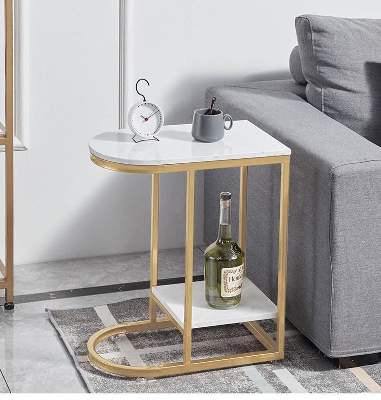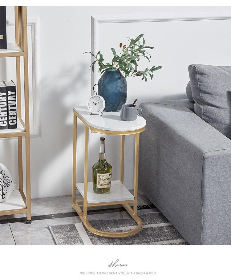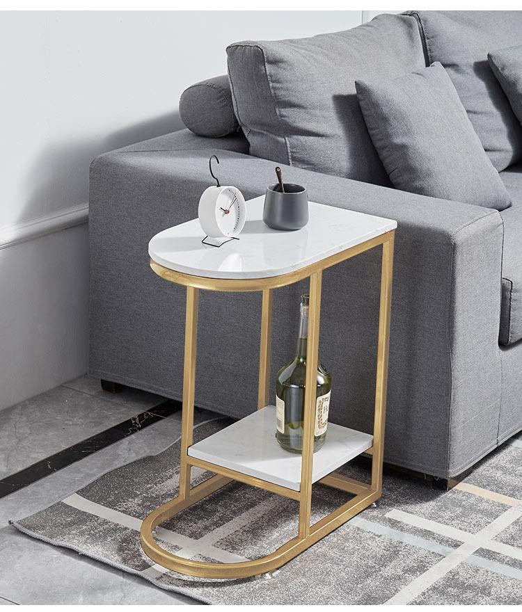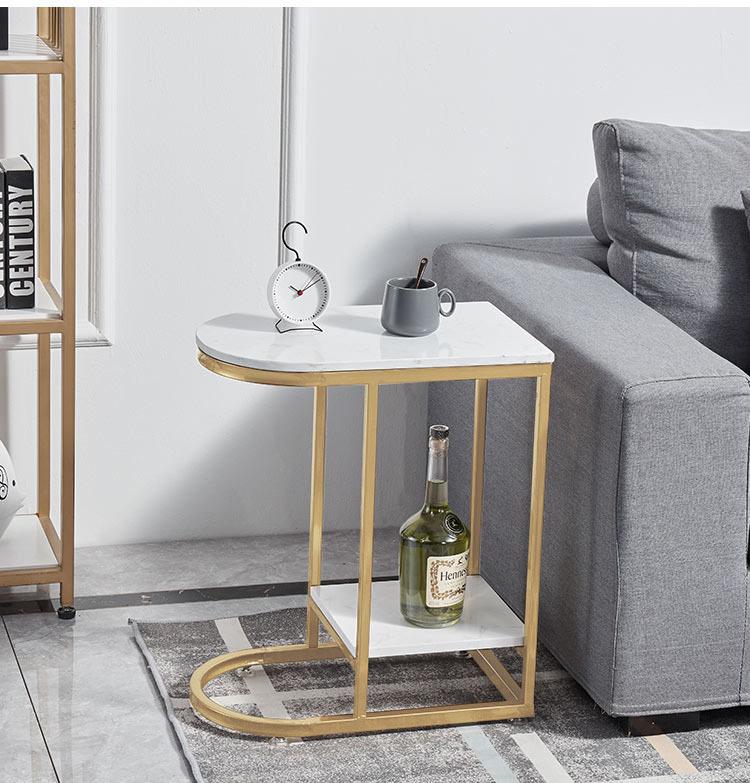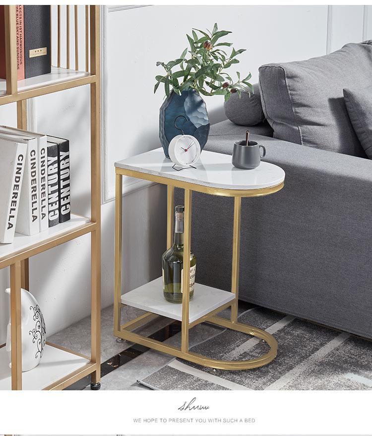 Mesa Auxiliar de Sofá de Mármol, Mesa de Esquina, Moderna, Simple, Lujo Ligero, Nórdica, Creativa, para Sala de Estar, Hogar, Mesita de Noche, Hierro, Mesa de Centro Pequeña