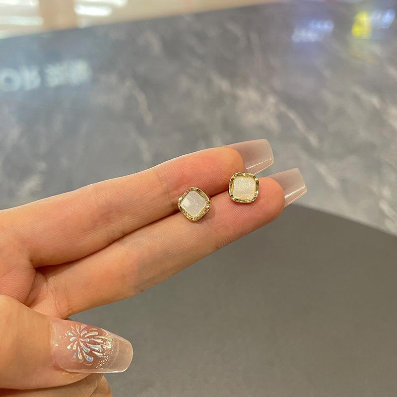 | Pendientes de plata S925 con diseño de aguja francesa, estilo retro, con aceite blanco, para mujer, pequeños, geométricos, curvos, sencillos y versátiles. |