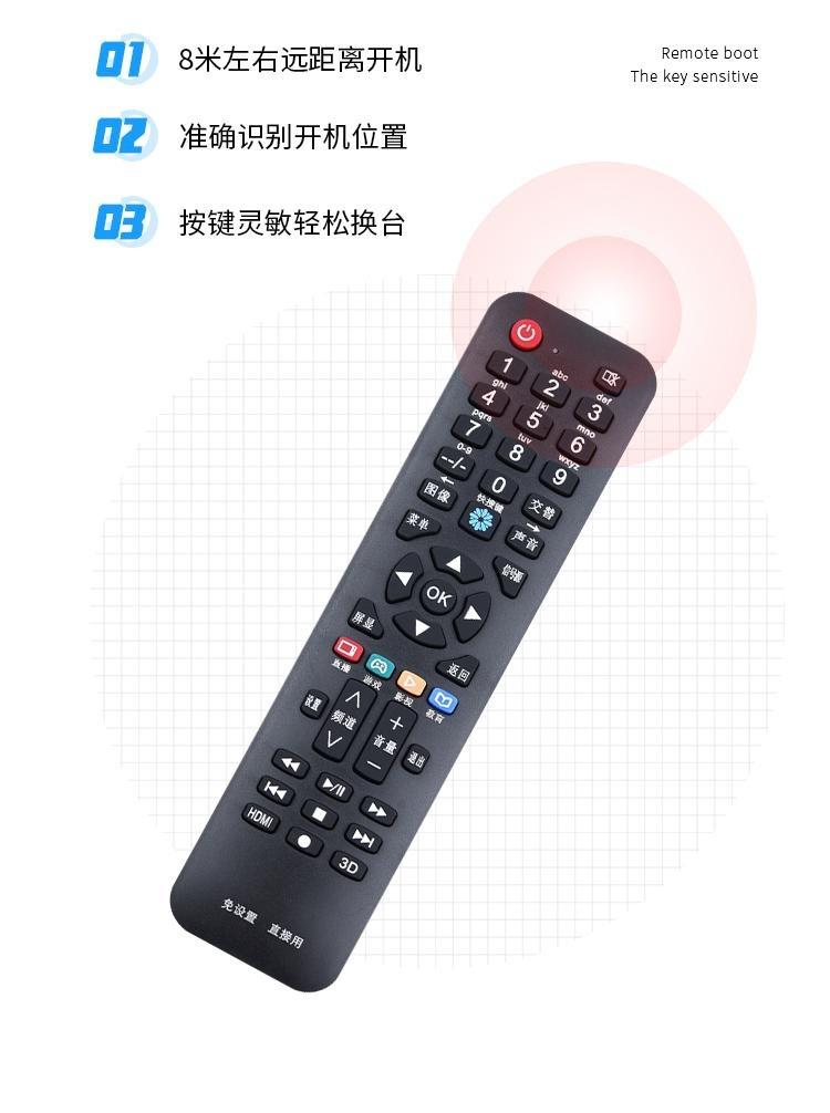 Control remoto universal para televisores LCD Hisense compatible con redes inteligentes y uso directo de LCD.
