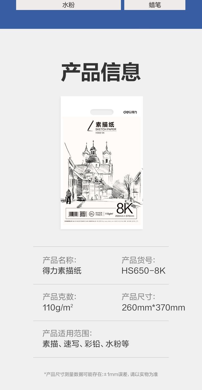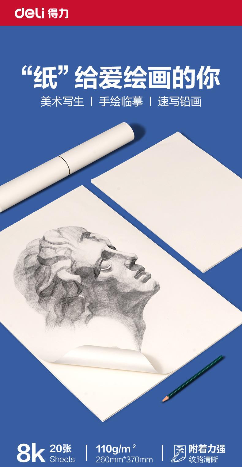 Papel de dibujo Deli HS650-8K, 110 g, 8K, 20 hojas, especial para estudiantes de arte, papel blanco