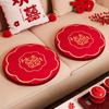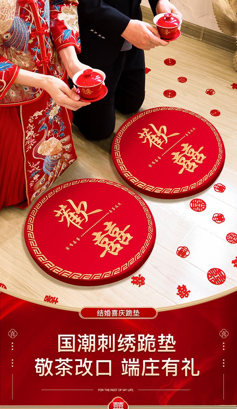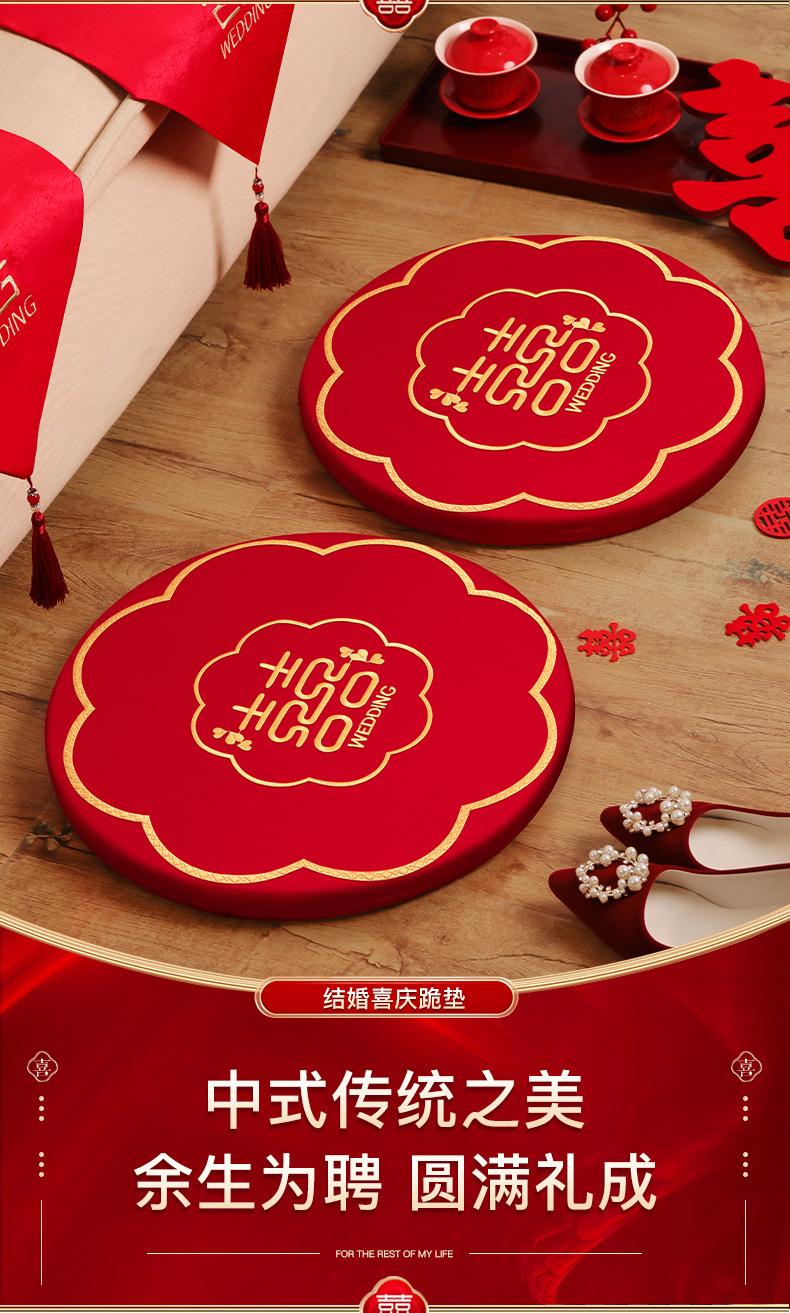 Almohadilla para Arrodillarse Boda Par de Personajes Redondos Felices Sentados Almohadilla de Bendición Novio y Novia Kowtow para Cambio de Té a Boda Rojo Feliz Almohadilla