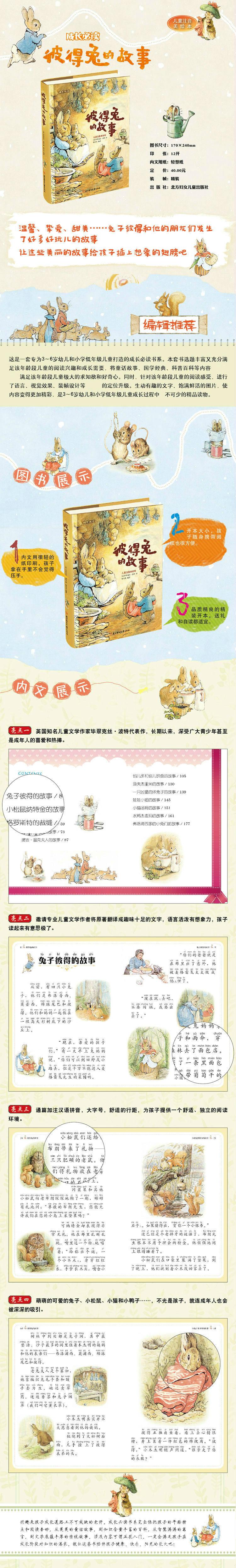 | Nombre del producto: | La historia de Pedro el Conejo (Libro de imágenes para niños con pinyin) (Exquisito)/Zhengzhangboku.com | formato: | 16 abierto |