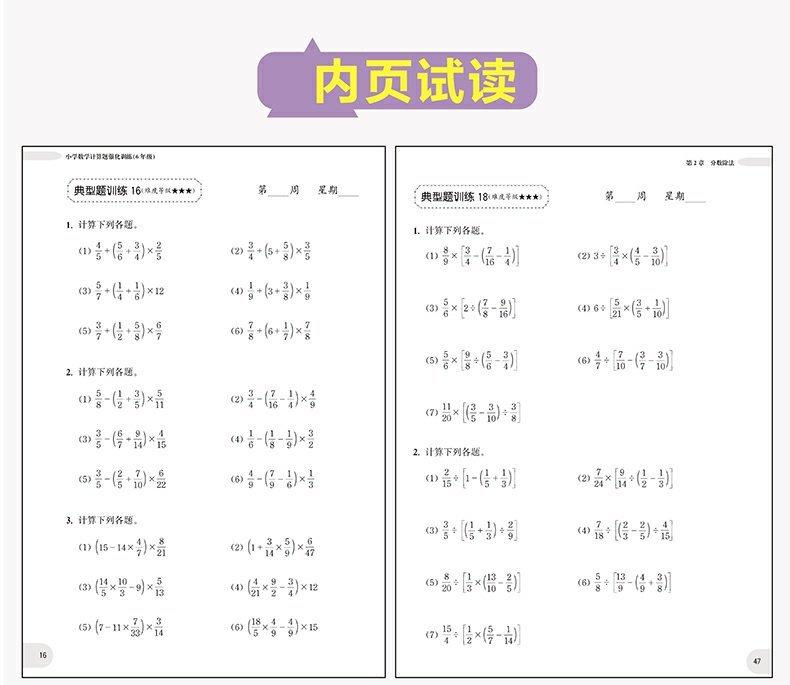 Los planes semanales en stock para fortalecer el entrenamiento de problemas de cálculo matemático de sexto grado de primaria, entrenamiento de pensamiento escalonado sincronizado todos los días