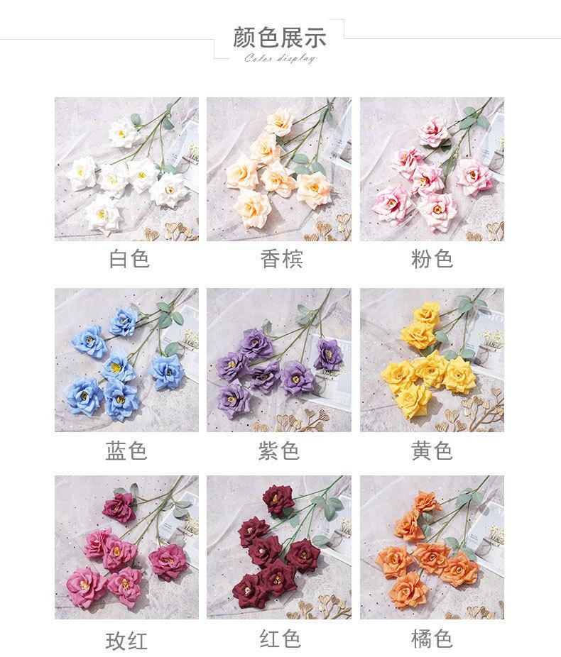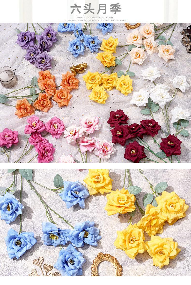 Rosas de 6 Cabezas Simuladas Ramo de Seda Artificial Falsa de Alta Gama Flor para Boda Adornos Decoración para Sala de Estar Flor Floral de Plástico