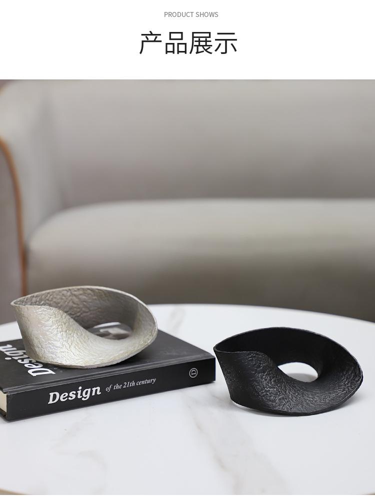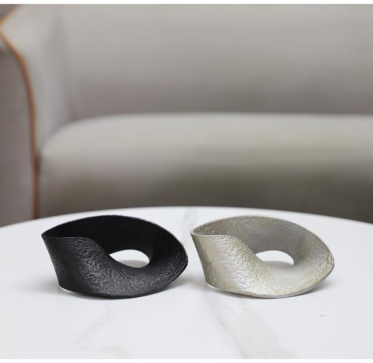 Anillo de Arte Geométrico de Lujo Ligero Estilo Europeo Negro Plata Decoración de Metal Adornos Sala de Estar Dormitorio Mueble de TV Accesorios Suaves para el Hogar