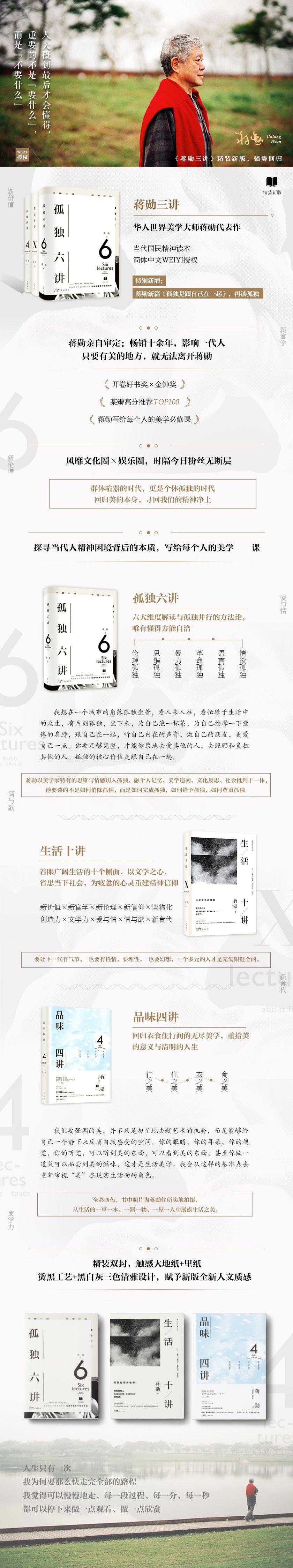 Este libro no trata sobre cómo eliminar la soledad, sino sobre cómo completar la soledad, cómo dar soledad y cómo respetar la soledad. Jiang Xun aborda la soledad con el pensamiento y la emoción únicos de un esteta, integrando memoria personal, indagación estética, reflexión cultural y crítica social, y crea la estética de la soledad: la esencia de la estética puede ser la soledad.