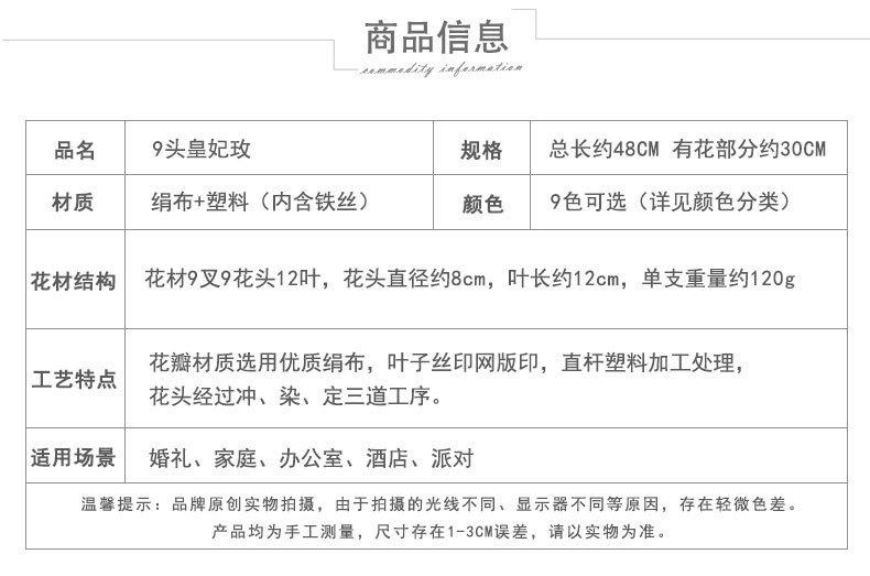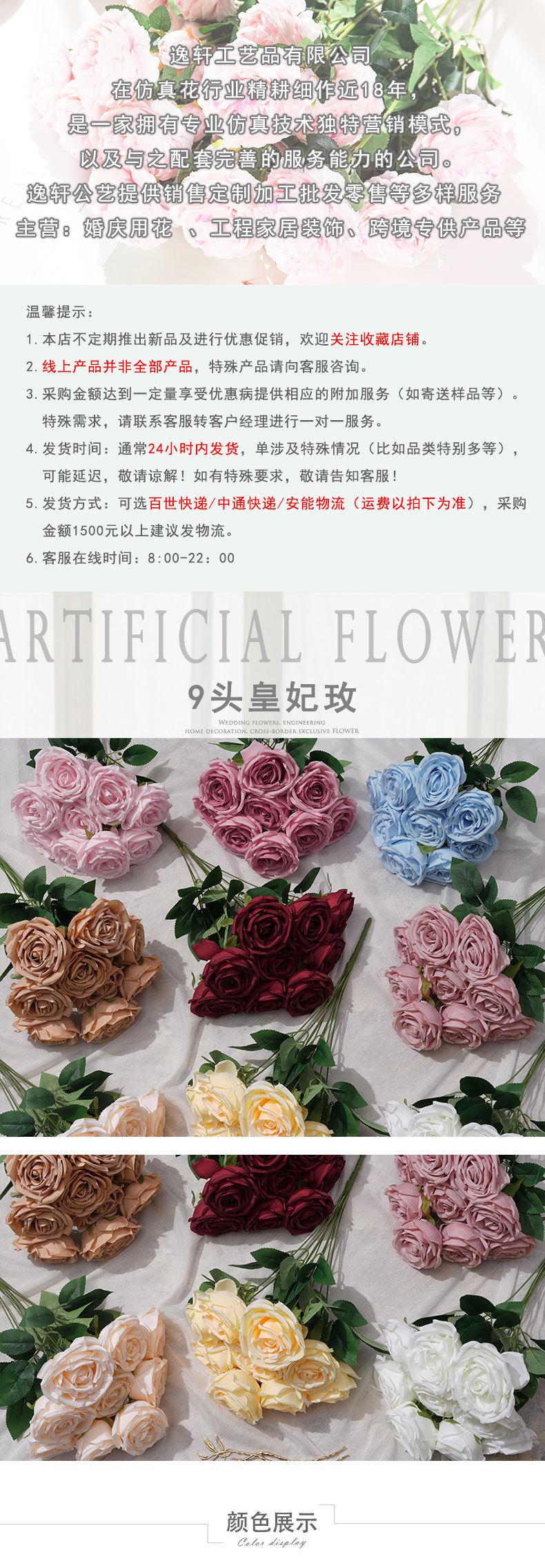 Ramo Falso de Rosas Princesa de 9 Cabezas Simuladas Flor de Seda Artificial Acabada Flor de Piso para Boda Flor de Plástico Arreglo para Boda