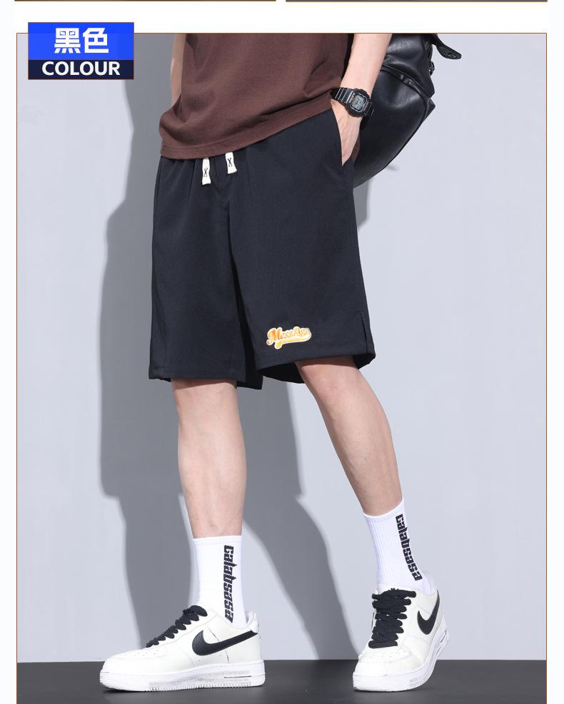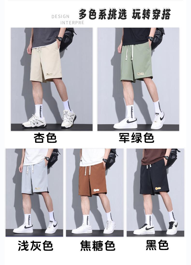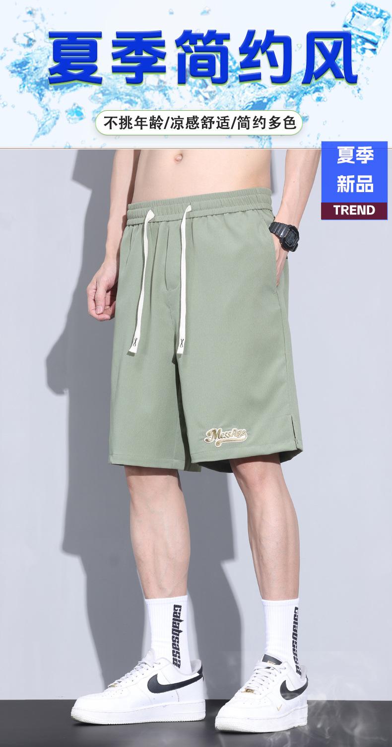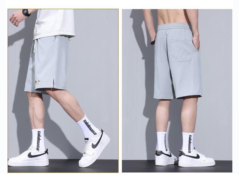 Pantalones cortos casuales sueltos de seda fina de hielo para hombre, nueva marca de moda de verano 2024, pantalones deportivos transpirables de secado rápido