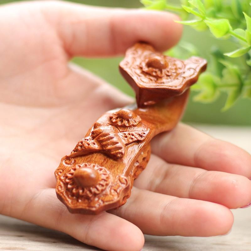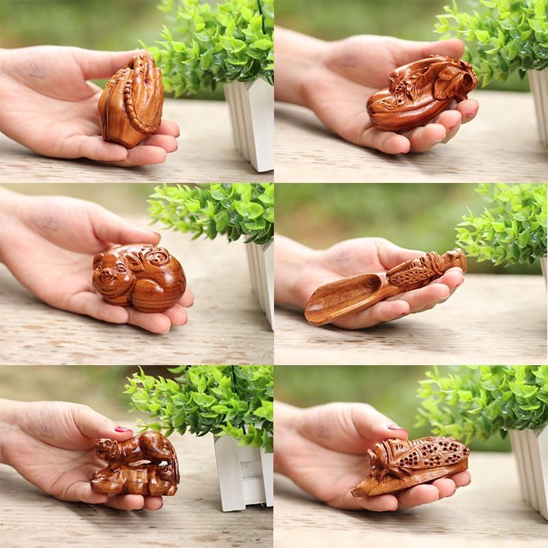 Manejar piezas de madera tallada roja Guibao 12 animales del zodíaco en el texto del tesoro jugar adornos fabricantes de madera