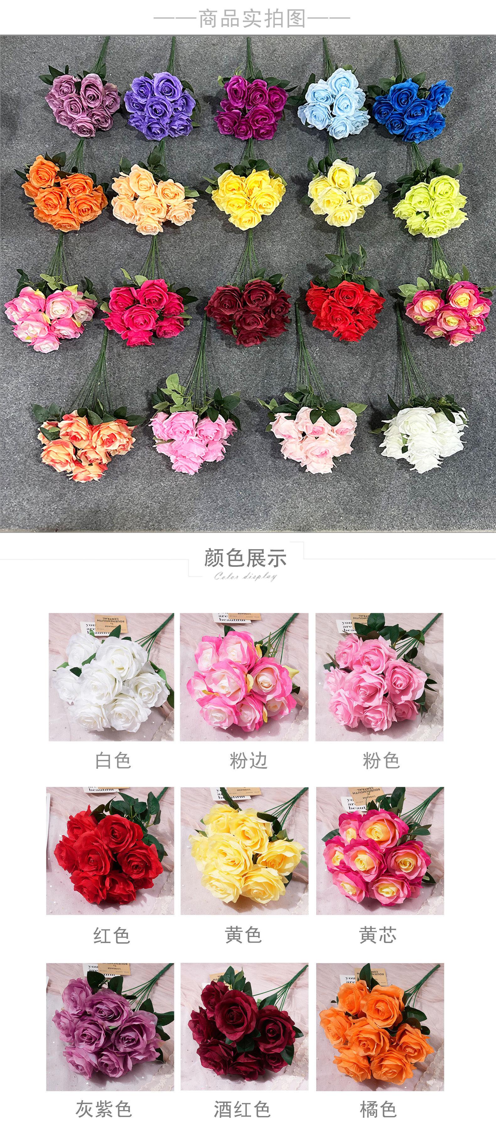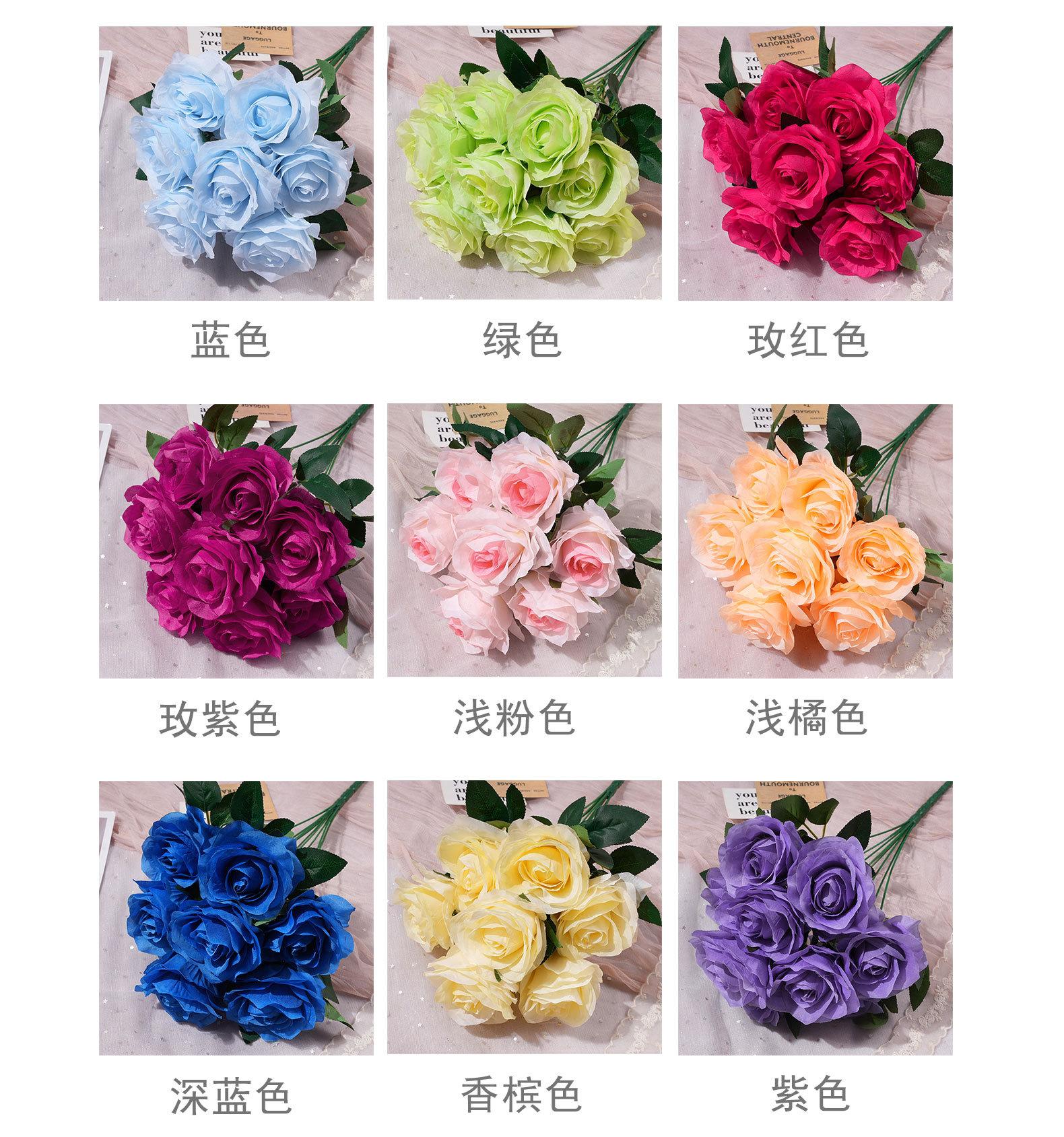 Rosa redonda de 9 cabezas transfronteriza, arreglo floral para auditorio de bodas, decoración de mesa para el hogar, arte floral de rosas.