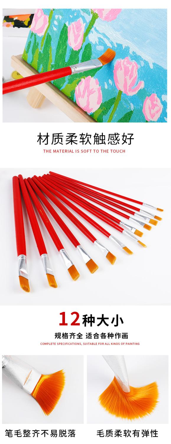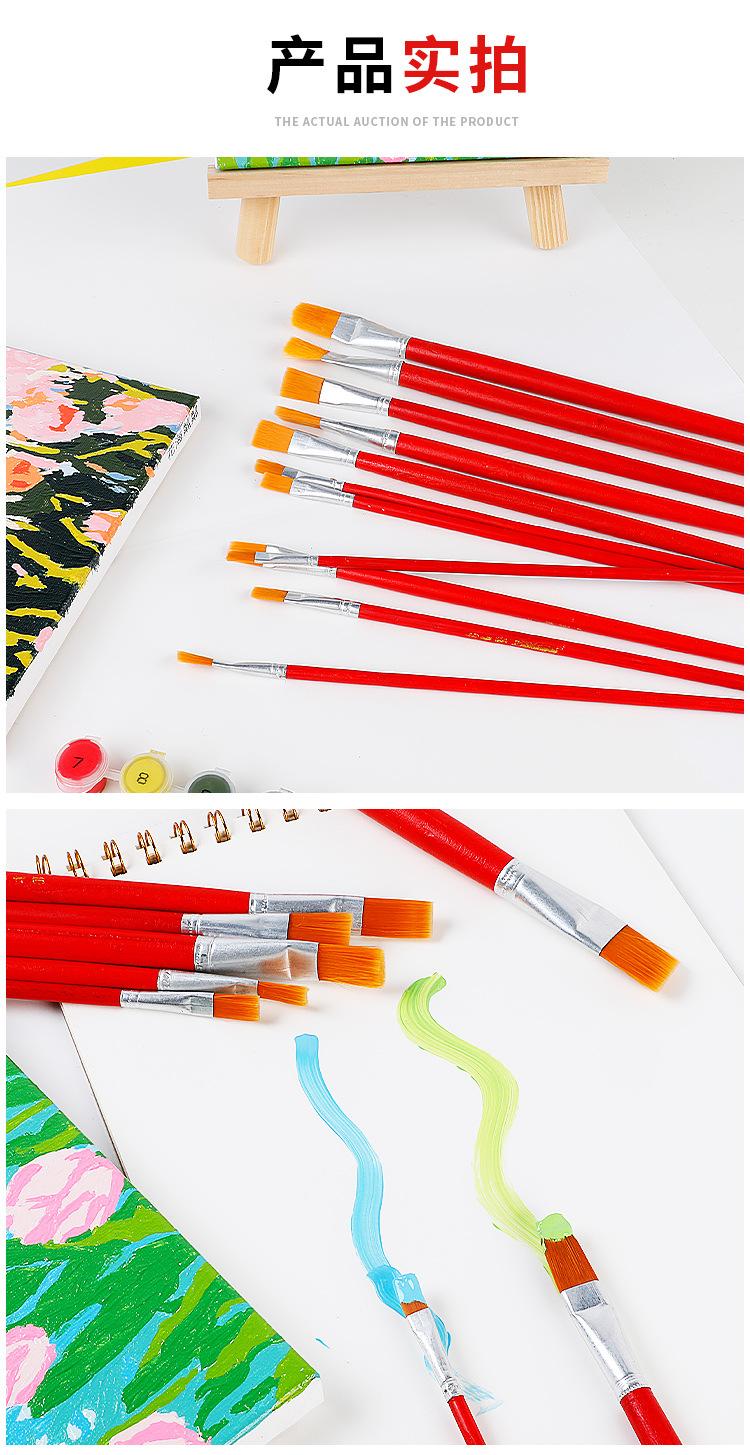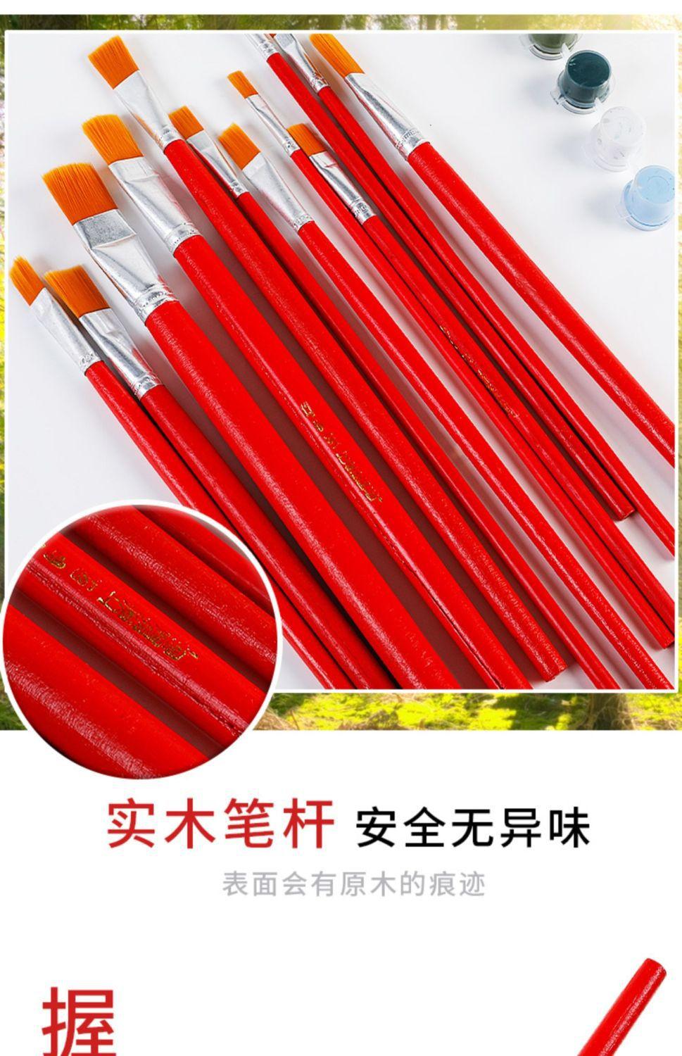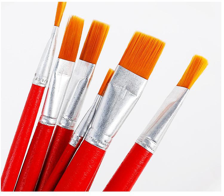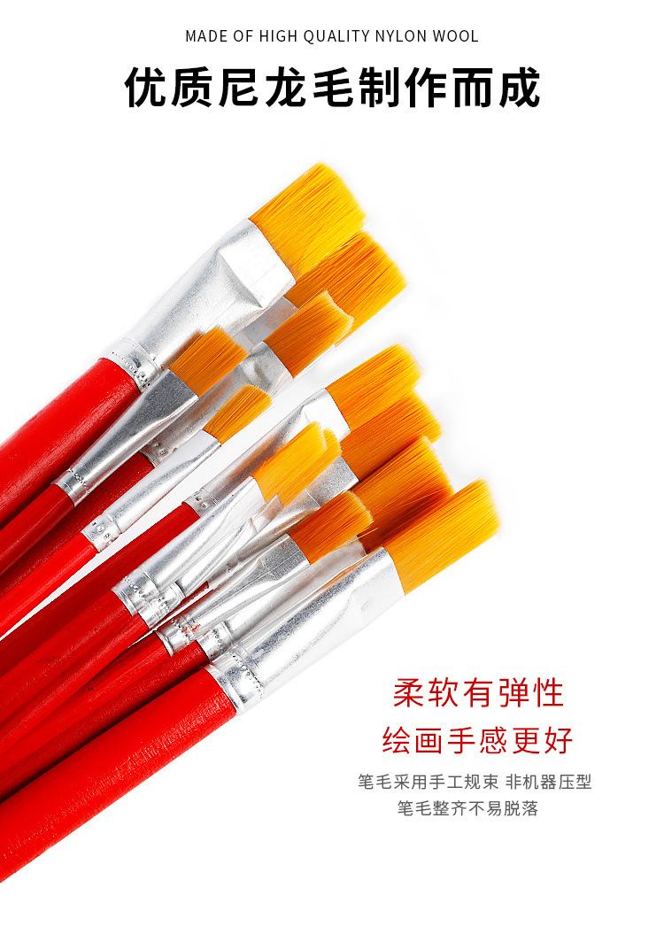 Pincel de nailon rojo para óleo, lana, para niños, gouache, acuarela, cabeza plana, industrial