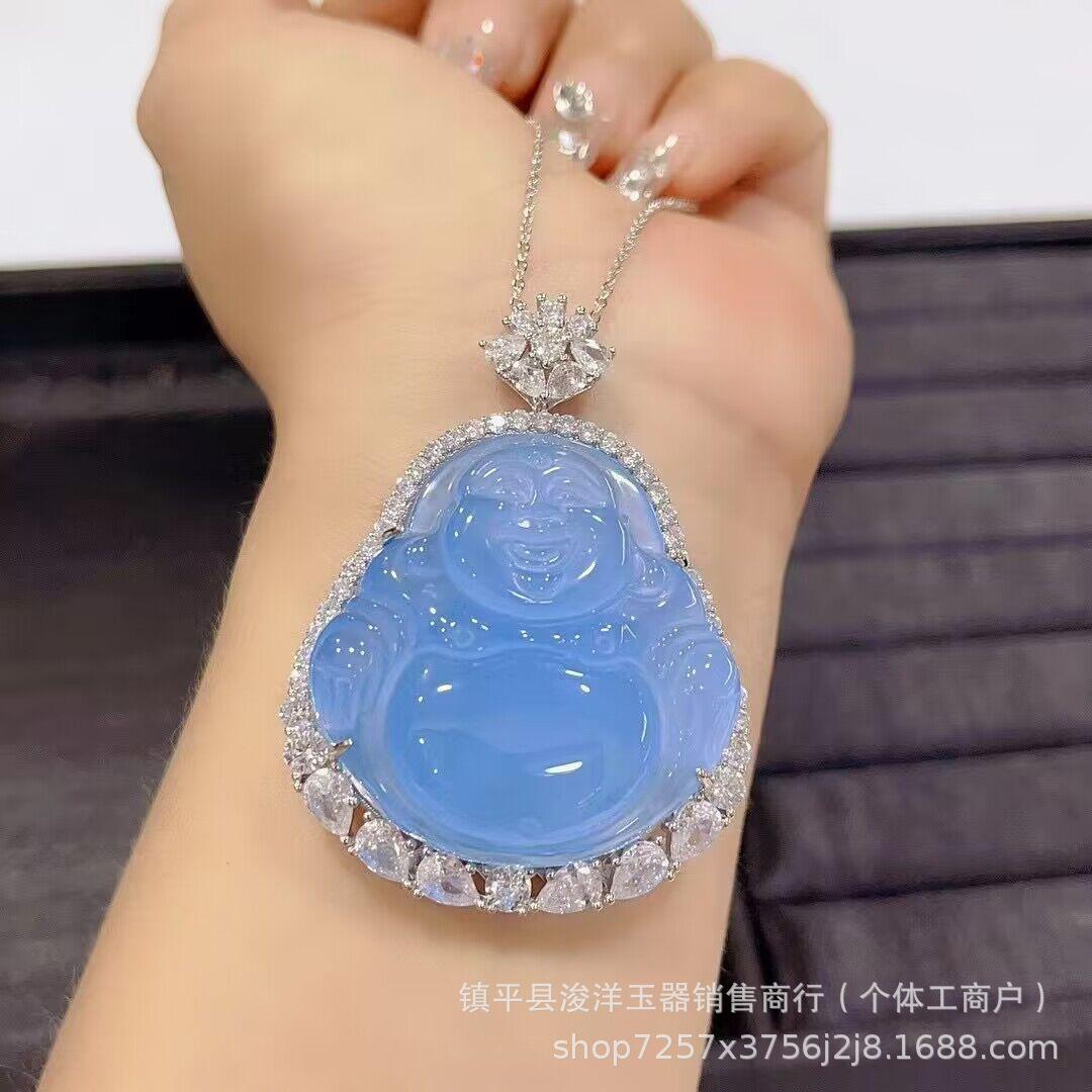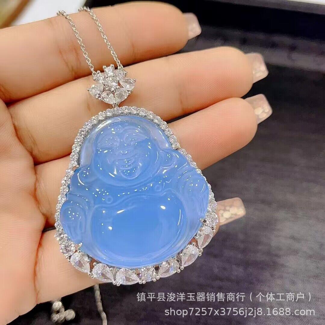 Blue chalcedony Buddha pendant one (excluding chain), Blue chalcedony Buddha pendant II (excluding chain)