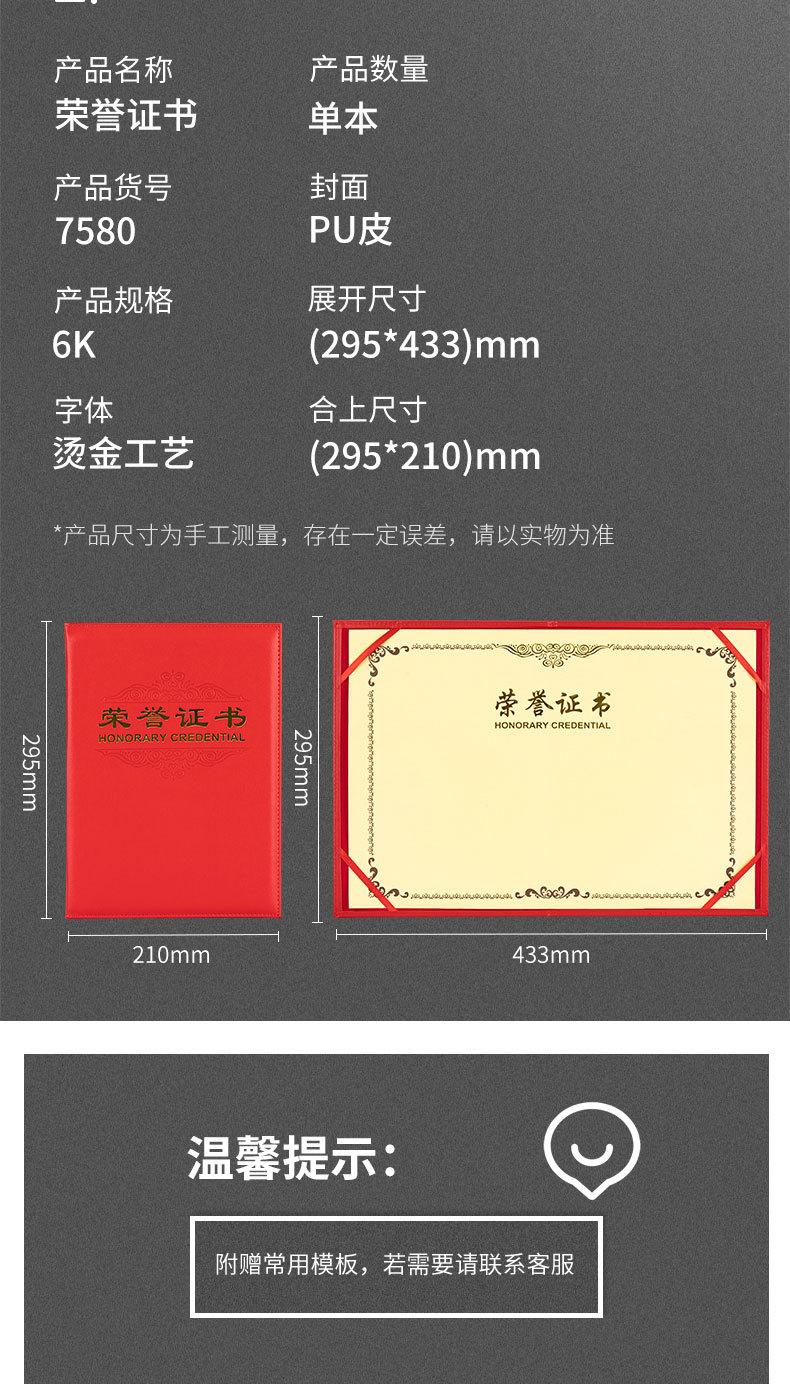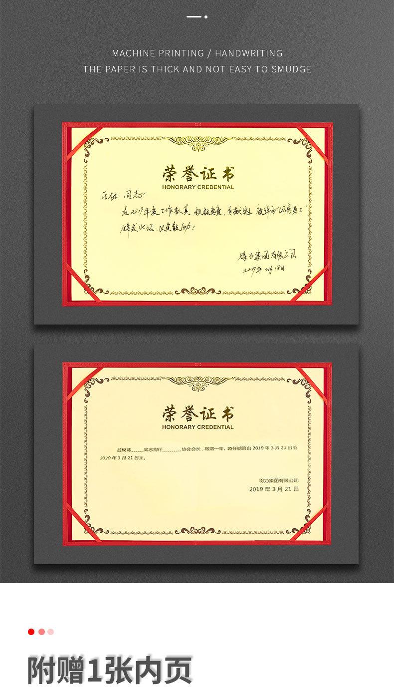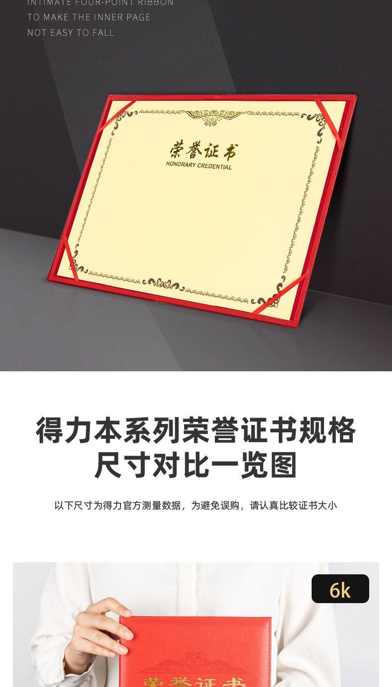 Deli 7580 Honorary Certificate (Reputation) (Red)-6K (Ben)