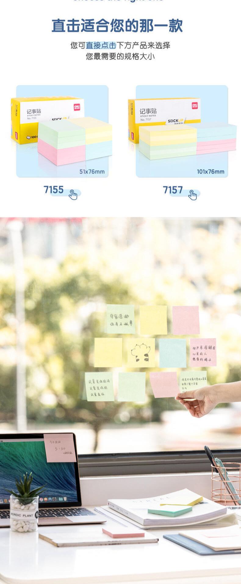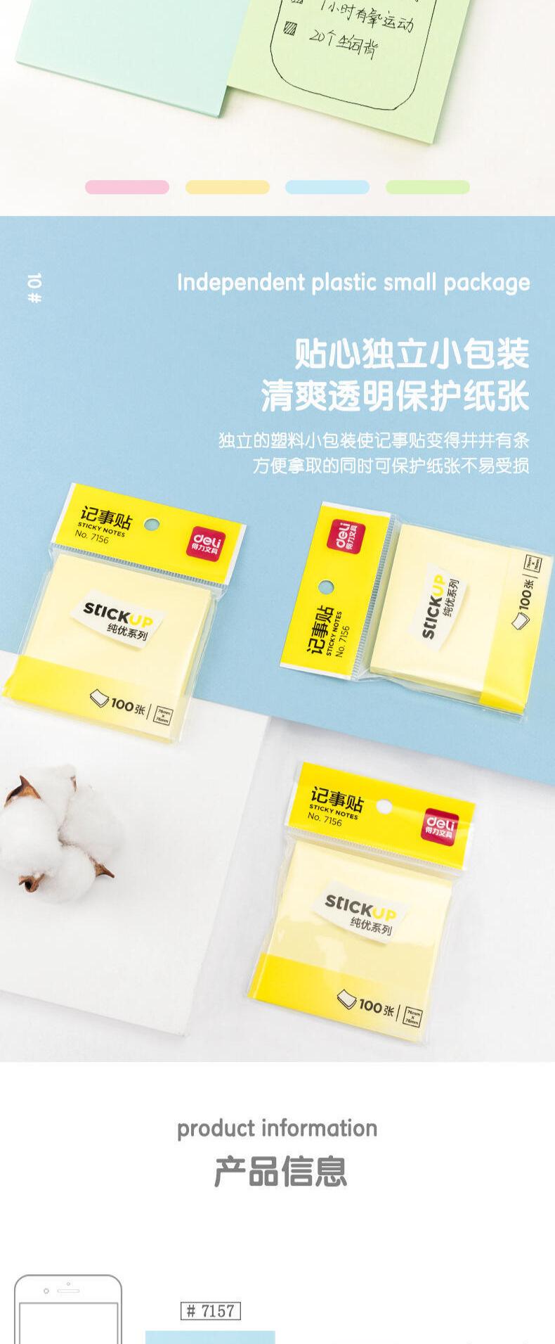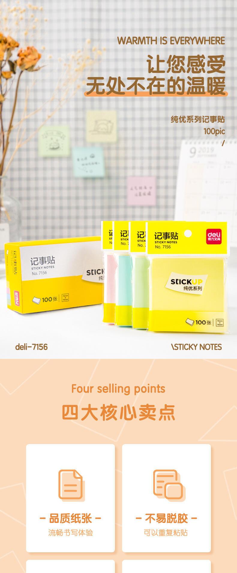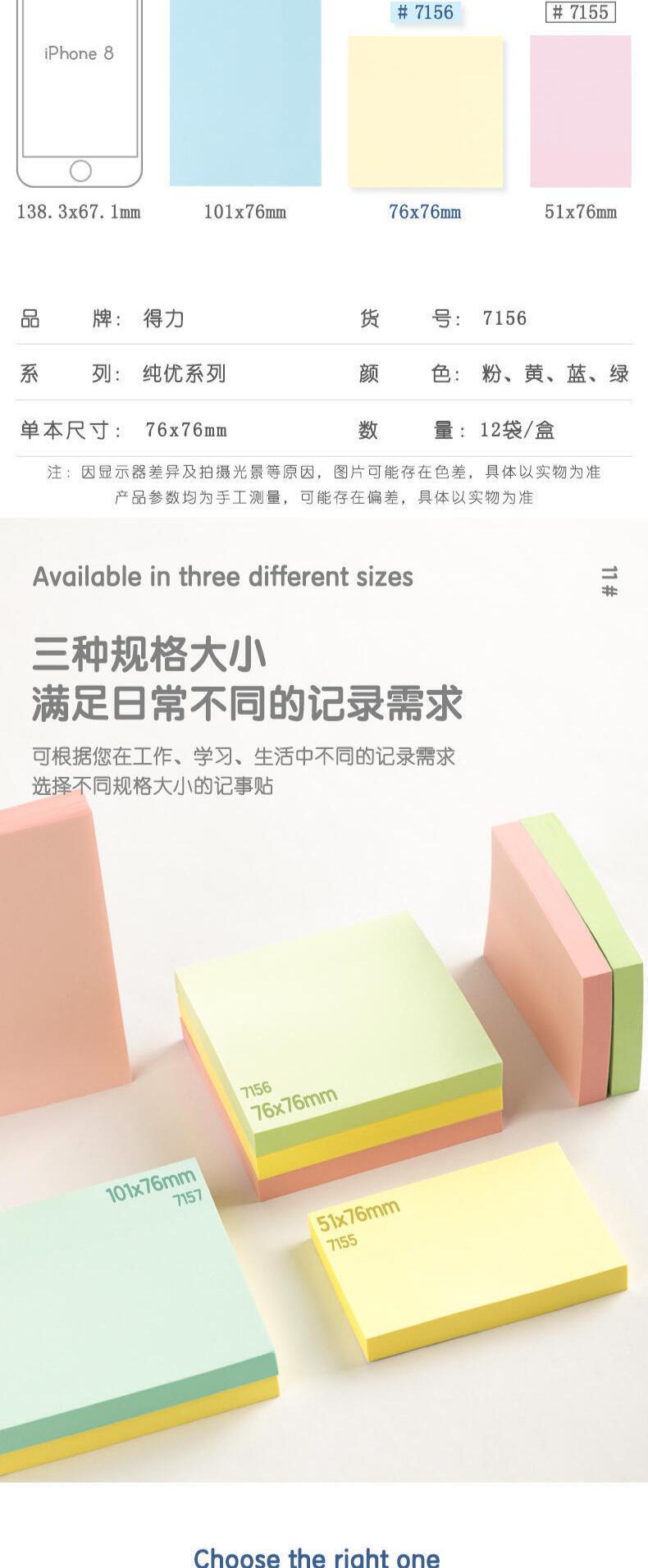 Papelería Deli 7155/7156/7157/7730 Bloc de notas de color Papel para mensajes Papel para notas adhesivas