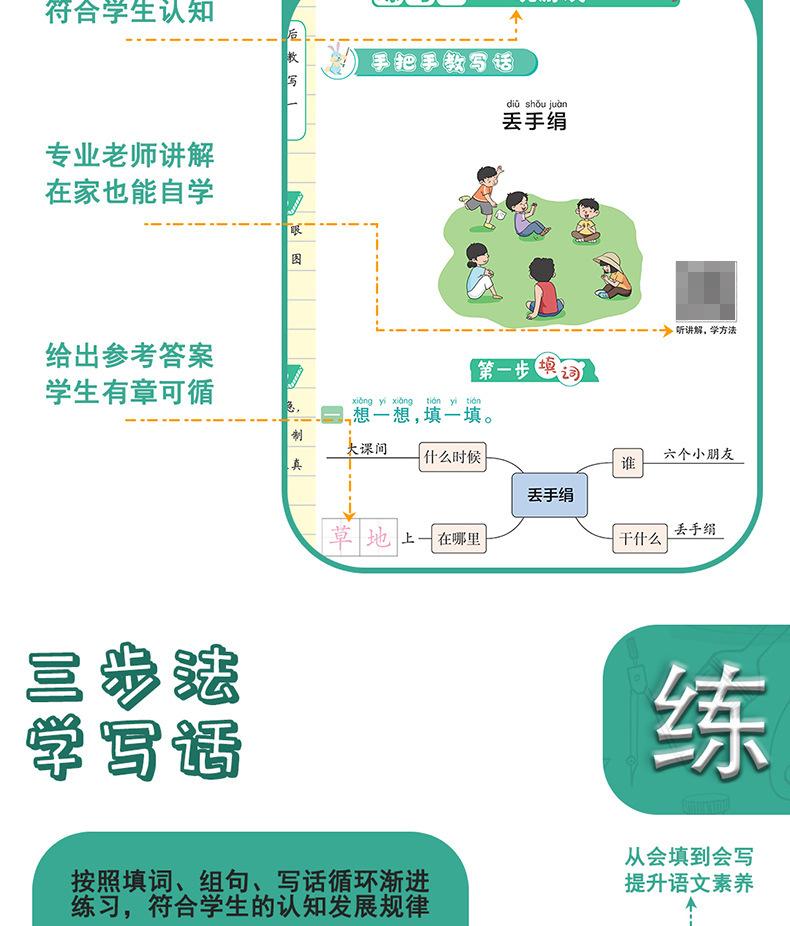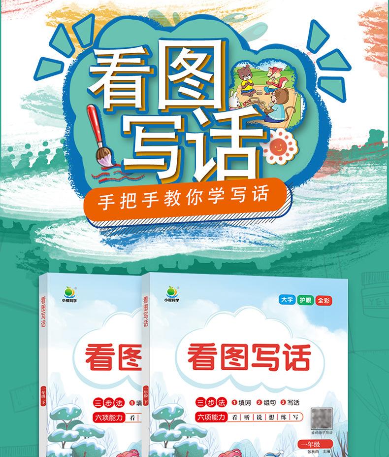 Mira la imagen y escribe las palabras.. Primer grado, segundo grado, primer grado, segundo volumen, comprensión lectora, entrenamiento especial, aprendizaje y práctica combinados con ejercicios sincrónicos.