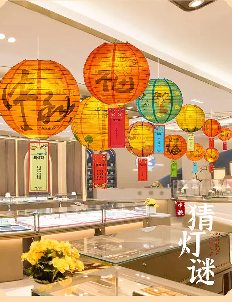 Faroles de Papel del Festival del Medio Otoño, Adivinanzas, Montaje de Escena, Decoraciones para Eventos en Centros Comerciales, Adornos Colgantes, Adivinanzas de Linternas, Decoraciones Colgantes, Brillantes
