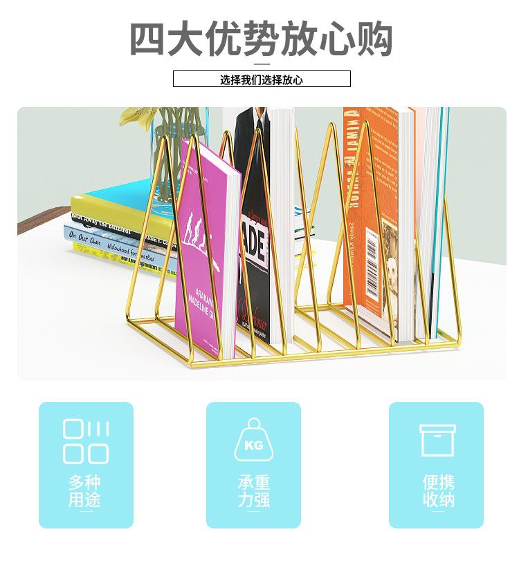 Estantería de escritorio de almacenamiento, estantería triangular de metal, hierro, sencilla, creativa, nórdica, soporte para libros