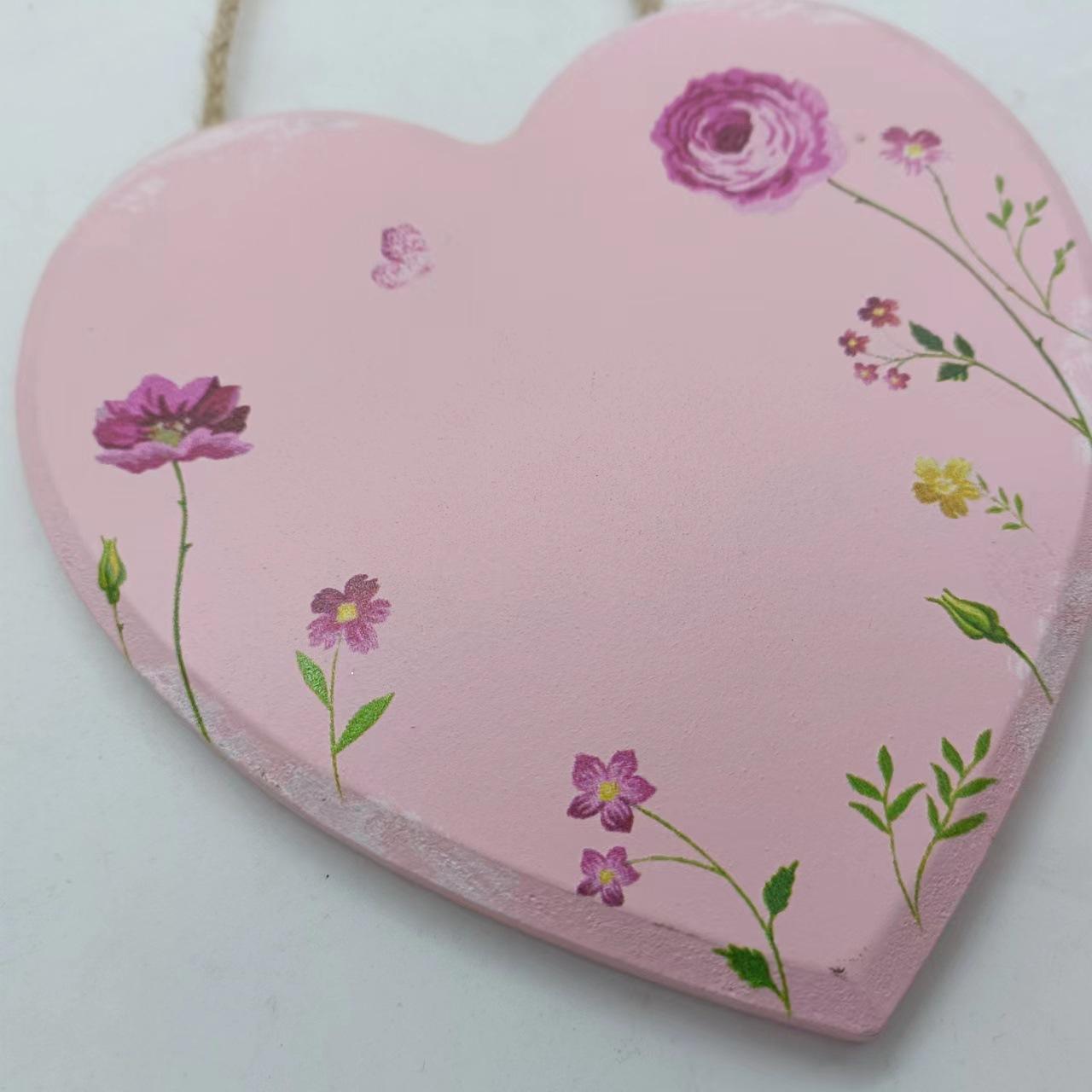 Decoración de flores con forma de corazón de amor, regalo de San Valentín, colgante de pared de MDF, etiqueta de decoración para dormitorio, colgante de madera