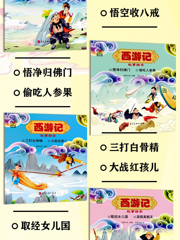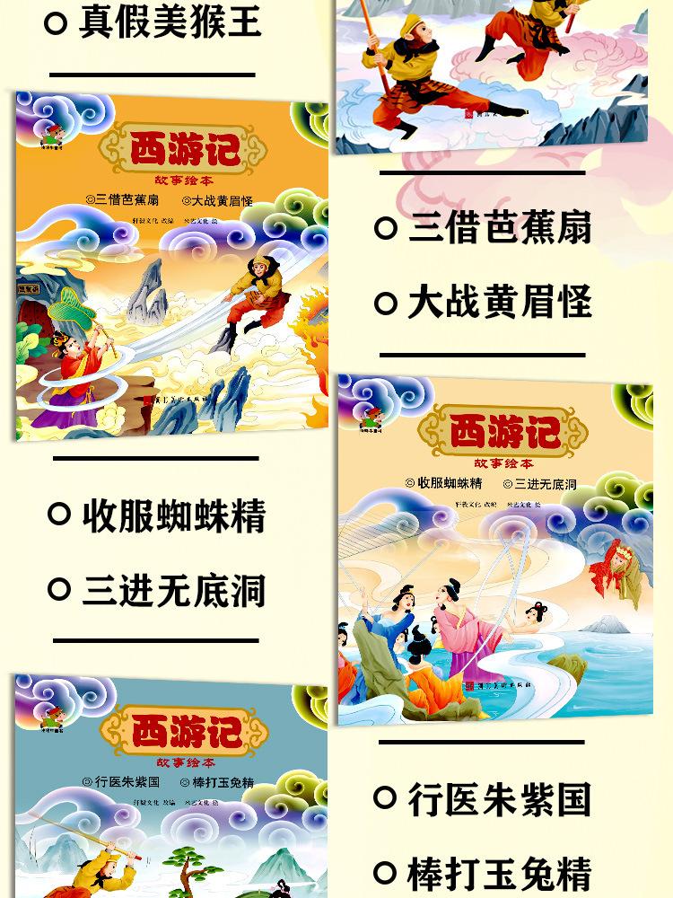 Los Cuatro Grandes Libros Viaje al Oeste Historia en Cómic Edición para Niños Libro de Lectura Bebé Educación Temprana Rompecabezas Cuento para Dormir Lectura