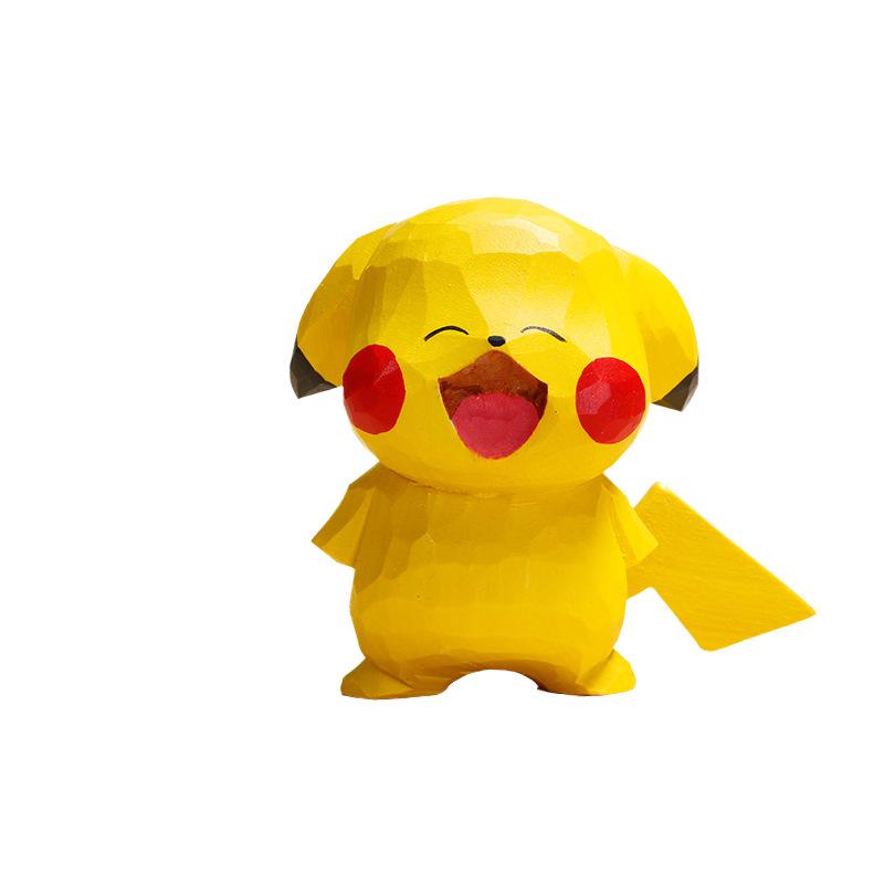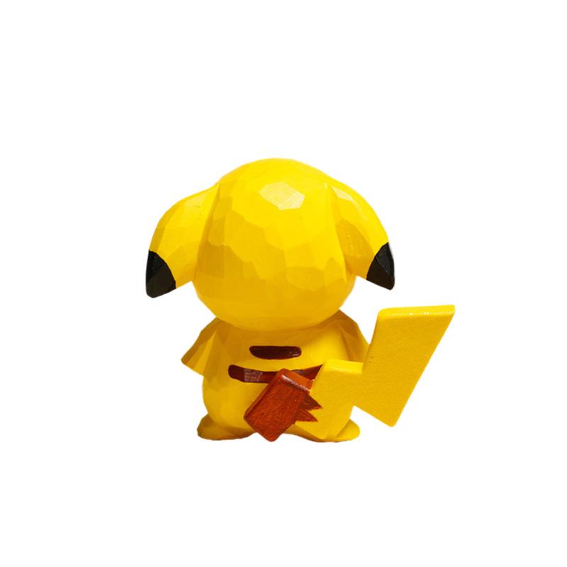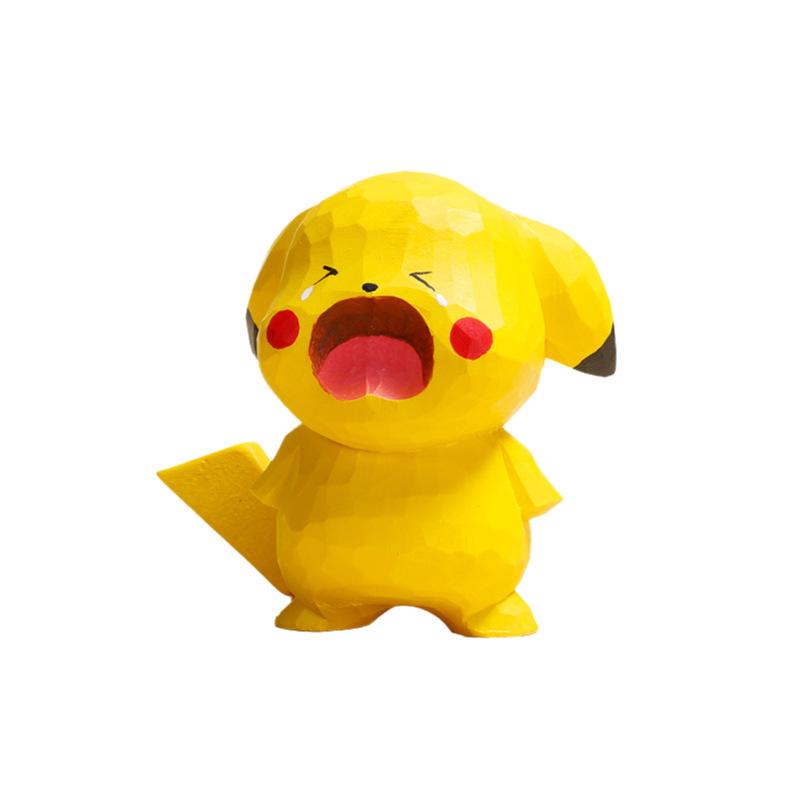 Figura de Pikachu tallada a mano en madera Tallado en madera Madera maciza Tilo Muñeco de ratón Artesanía decorativa Regalo Lindo y divertido
