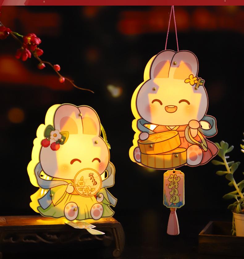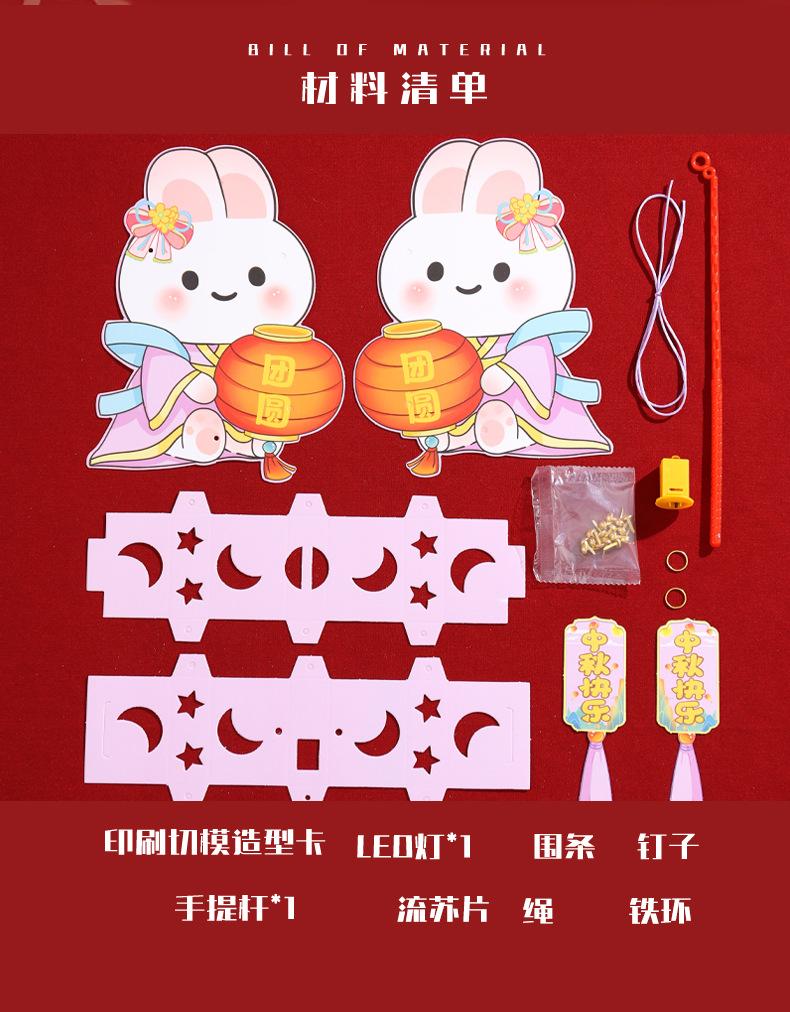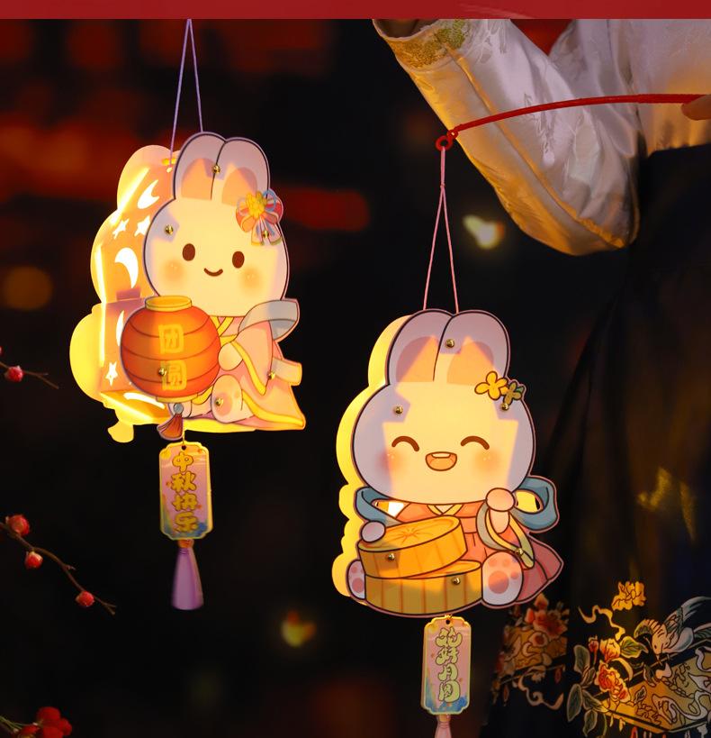 Festival del Medio Otoño linterna diy bolsa de material hecho a mano linterna portátil de conejo luminosa linterna linterna de palacio fabricantes para niños